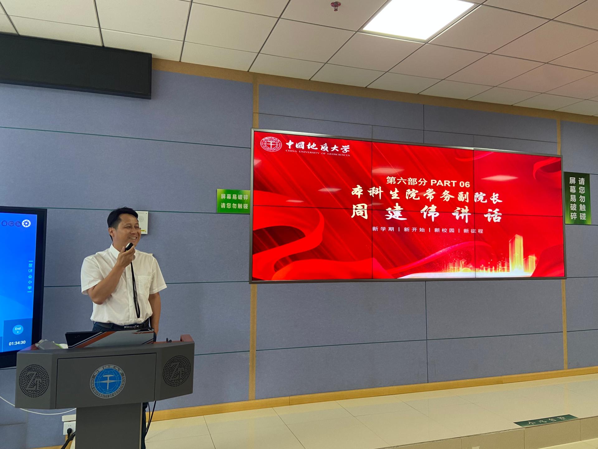 沈传波从成长、成才、奋斗三个方面发言。他希望第十六期“李四光计划”班能在大家的共同努力下,成为一个团结友爱、热情奋发、拼搏向上的团队,让奋斗成为青春最亮丽的底色,不负学校的期望。