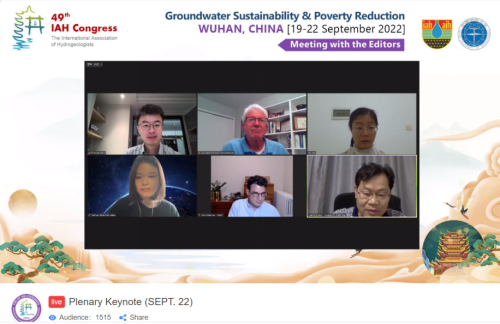 来自6大洲40个国家的418位注册代表参加了为期4天的线上会议,本次大会设置了专题为“地下水可持续性与消除贫困”、“地下水型生态系统”、“地下水水质与人类健康”、“全球变化与地下水循环”、“寒区可持续水资源的未来”、“地下水与地下能源开发”、“岩溶水文地质学进展”、“含水层系统的地质微生物学”、“地表水-地下水相互作用”、“地下水模拟与水文地质学中的数学方法”、“地下水探测与治理”、“同位素水文学与地下水”、“城市地下水”、“区域地下水系统与跨界含水层”、“地下水人工回补”、“滨海与离岸水文地质学”16个分会场,安排了9个大会主旨报告,34个分会场特邀报告,340个口头和海报交流,还组织了“编辑面对面”特别活动,邀请了Applied Geochemistry、Environmental Science & Technology、Groundwater、Hydrogeology Journal、Journal of Hydrology和Nature Water等地下水科学领域国际重要期刊的主编或副主编与全球水文地质工作者交流学科前沿与科研成果发表。