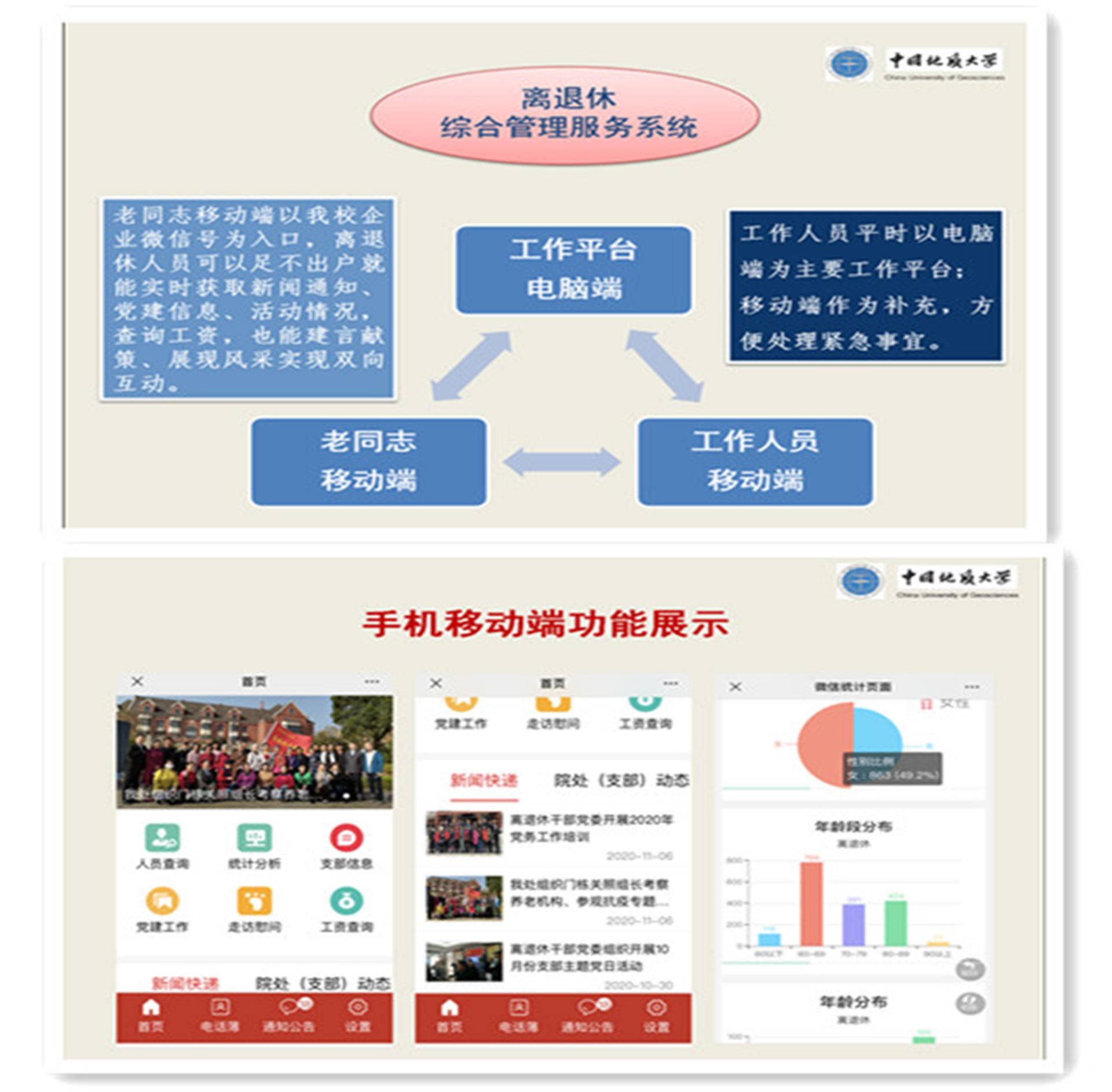 信息化带动工作朝精细化、规范化方向纵深发展。离退休工作处搭建完成数字化网络服务平台,启用离退休工作管理系统。依托网络服务平台,建立起“一楼一微信群、一楼一栋长”的网格化管理模式。创建智慧党建新模式,建立“互联网+教育”新平台,实现老同志政治学习、思想交流、生活服务、慰问关怀的全覆盖、精分类,成为党建宣传的新阵地、工作交流的新平台、教育管理的新载体、凝聚力量的新渠道、党员网上新家园。