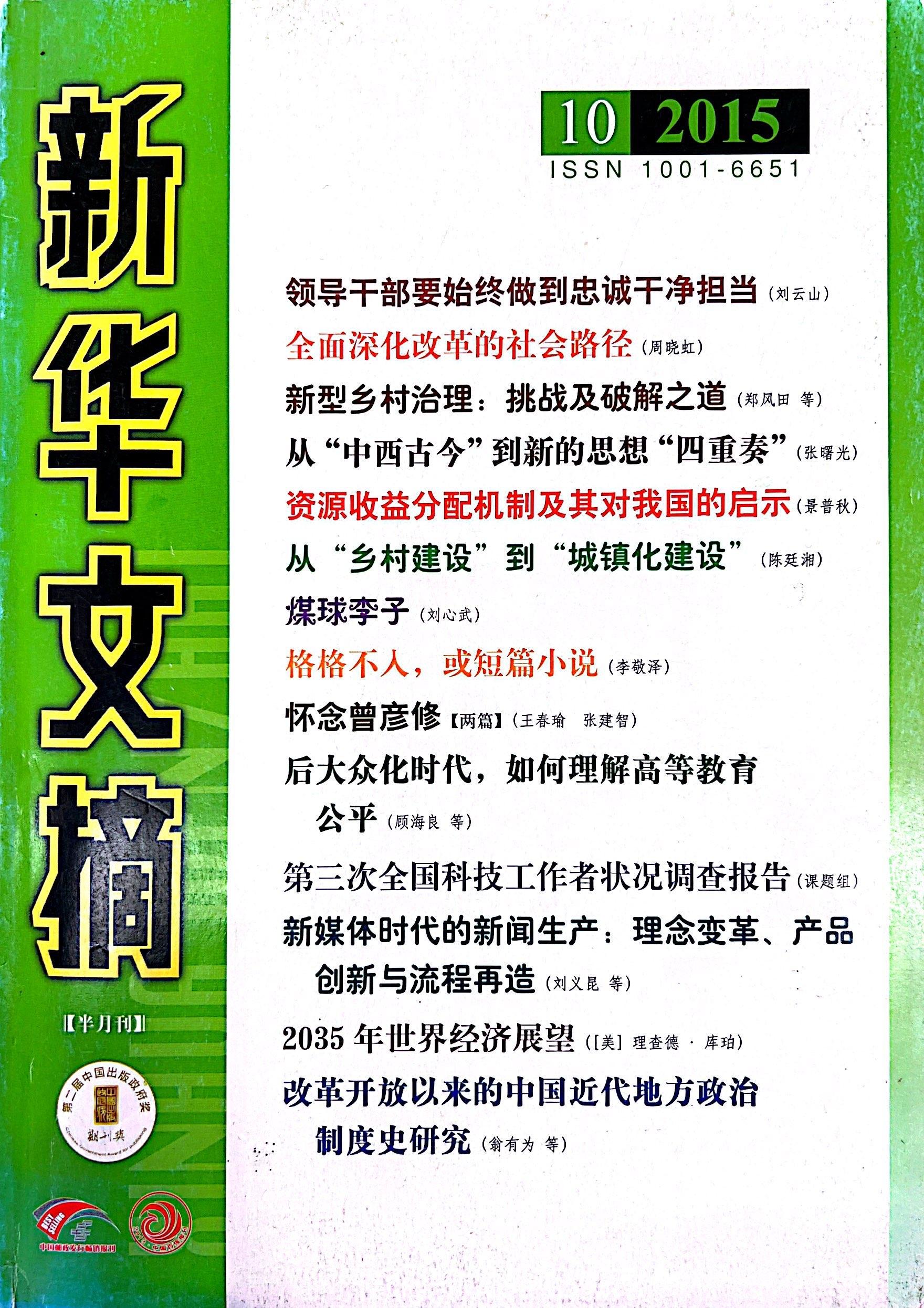 《新华文摘》转载刘义昆的学术论文