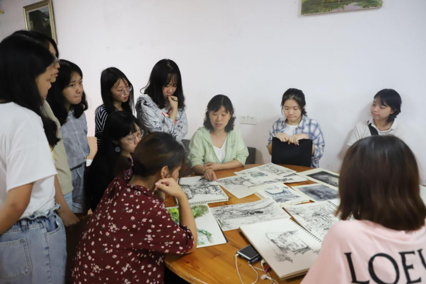 设计学老师指导江西婺源采风写生学生