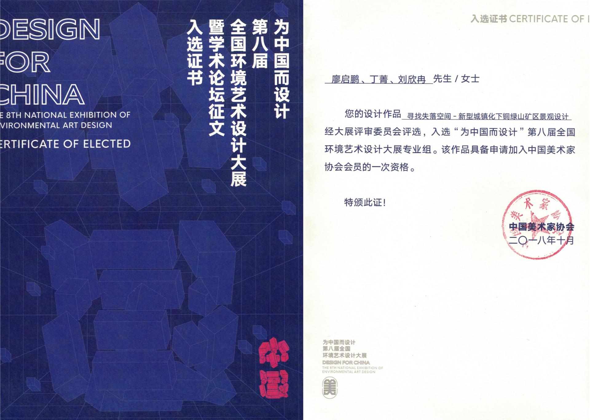 廖启鹏作品入选“为中国而设计”第八届全国环境艺术设计大展专业组
