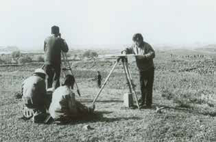 当时的建校工地位于城郊,荒草丛生,生活交通很不方便。新校址附近仅有一个小村子,无房可租,只好从相邻的华中工学院借住两栋小楼。1975年4月,学院基建教职工自己动手建起学院的第一栋房子——工棚。在这个冬冷夏热的简陋工棚里,职工、学生与工人师傅共同劳动,白天在工地测量,晚上整理资料和图件,不到两个月时间,就完成了校区约1000亩地的测量工作,为设计单位提供了建校必须的基础资料。