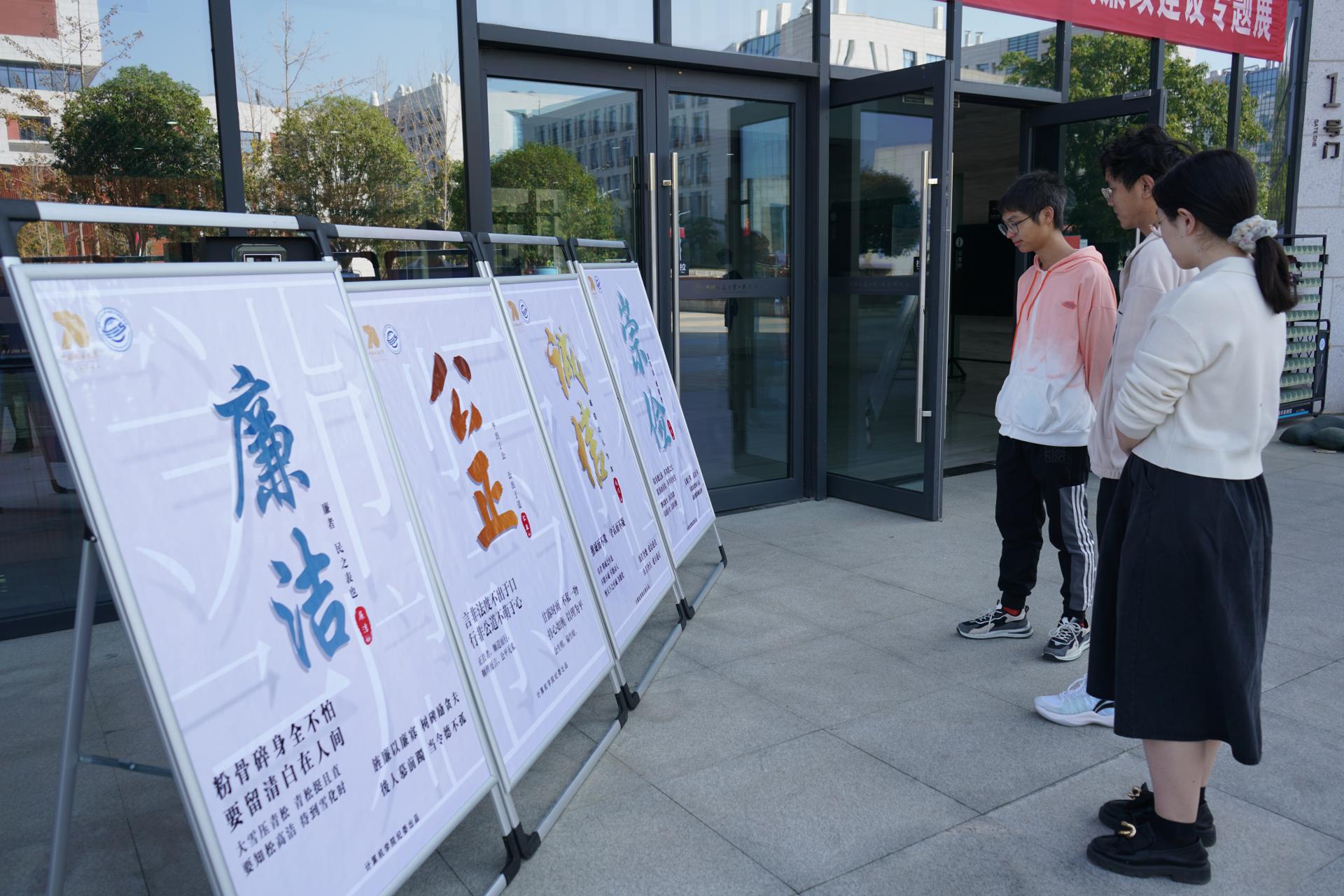 校党委副书记、纪委书记唐忠阳一行来到活动现场,与师生亲切交流,为获得“党风廉政知识竞答”活动一等奖的学生颁发奖品。