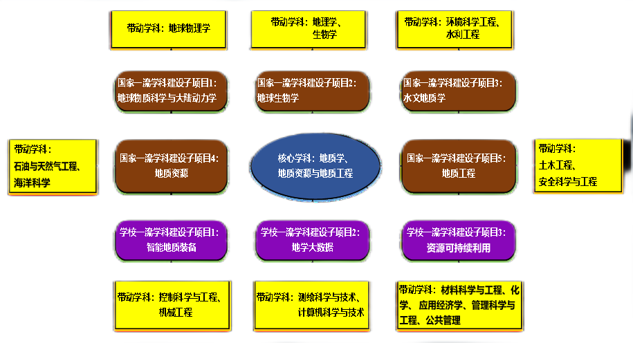 学校新一轮“双一流”建设聚焦美丽中国、宜居地球建设需求,坚持“强化特色、关联生长”,继续以地质学、地质资源与地质工程2个一级学科为核心,围绕国家战略和区域经济社会发展重大需求,布局地球生物学、深地科学、地质环境与健康、战略性矿产资源、地质工程与人居安全和深地探测与地球动力学6个国家“双一流”建设项目,长江流域自然资源全息检测与智慧管理、智能地质装备和自然资源管理与政策3个省“双一流”建设项目,努力推动地质学、地质资源与地质工程迈向世界一流,同时发挥两个一流学科建设牵引作用,带动地球系统科学学科、基础学科、特色工科和特色文科等60%的在建一级学科发展,促进学校整体发展水平、可持续发展能力的成长和提升。