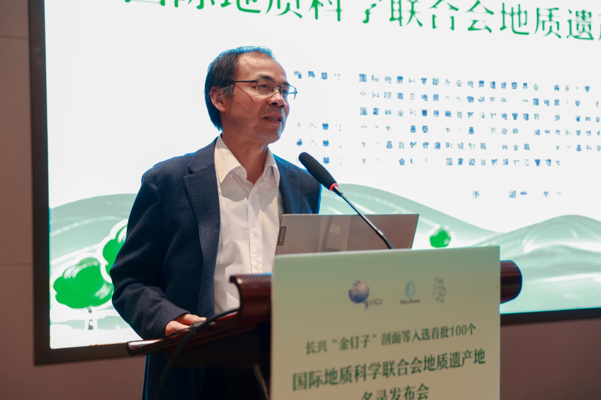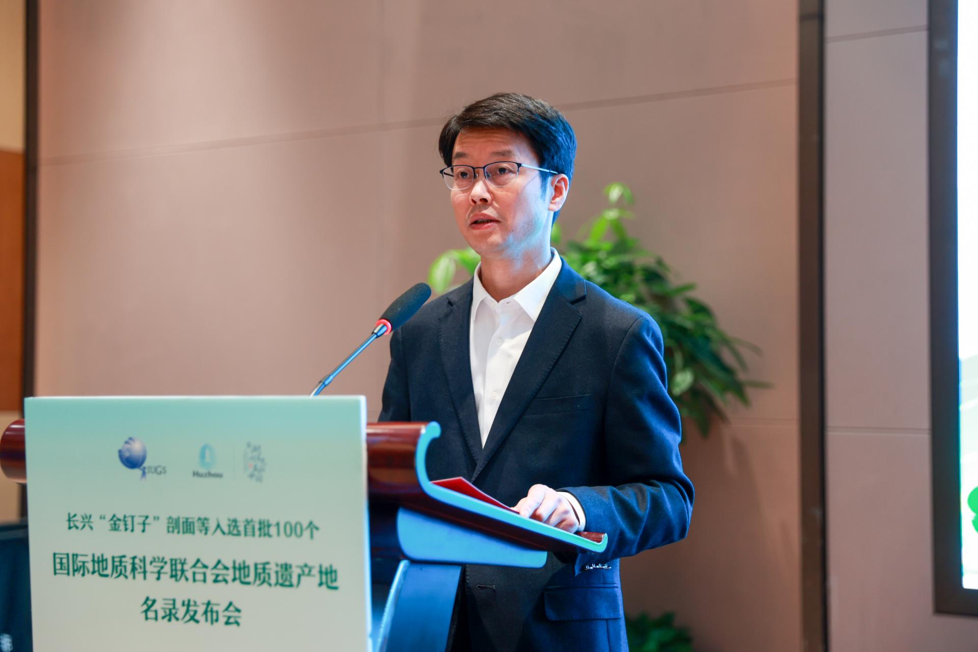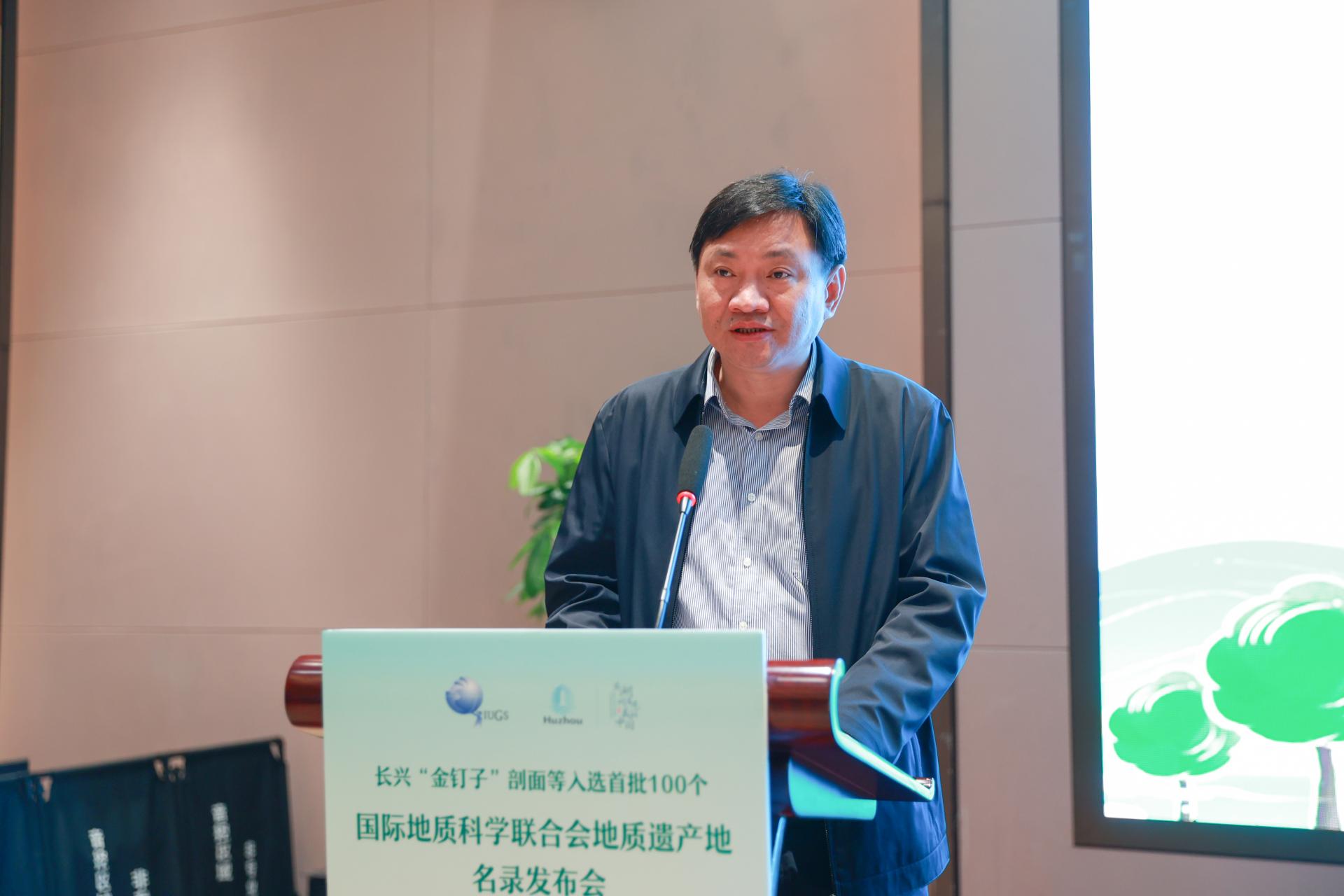 长兴县副县长周卫凌对参与发布会的嘉宾表示欢迎,对他们为长兴“金钉子”入选全球首批地质遗产地名录做出的贡献表示感谢。