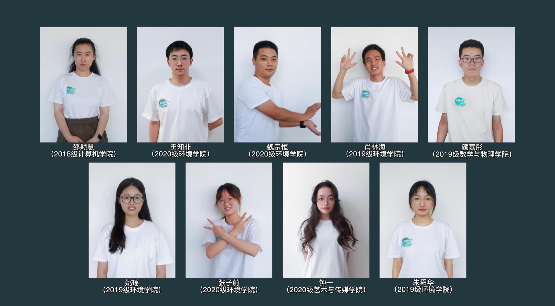 该团队由19名本科生组成,他们分别来自环境学院、数学与物理学院、计算机学院和艺术与传媒学院。团队指导教师由环境学院胡译丹副教授、石良教授、董依然教授、蒋永光副教授担任,环境学院博士研究生骆治昊,硕士研究生闪亚微、韩茜和徐家成参与指导。