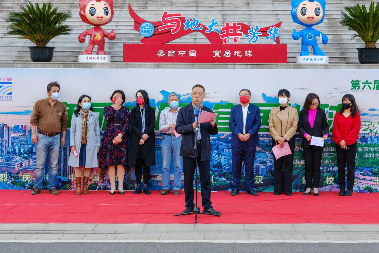 唐忠阳致辞。他说,美育是传承文化、铸魂育人的重要途径,希望师生们积极参与学校的美育工作,以党的二十大精神为指引,为学校建成地球科学领域世界一流大学贡献力量。