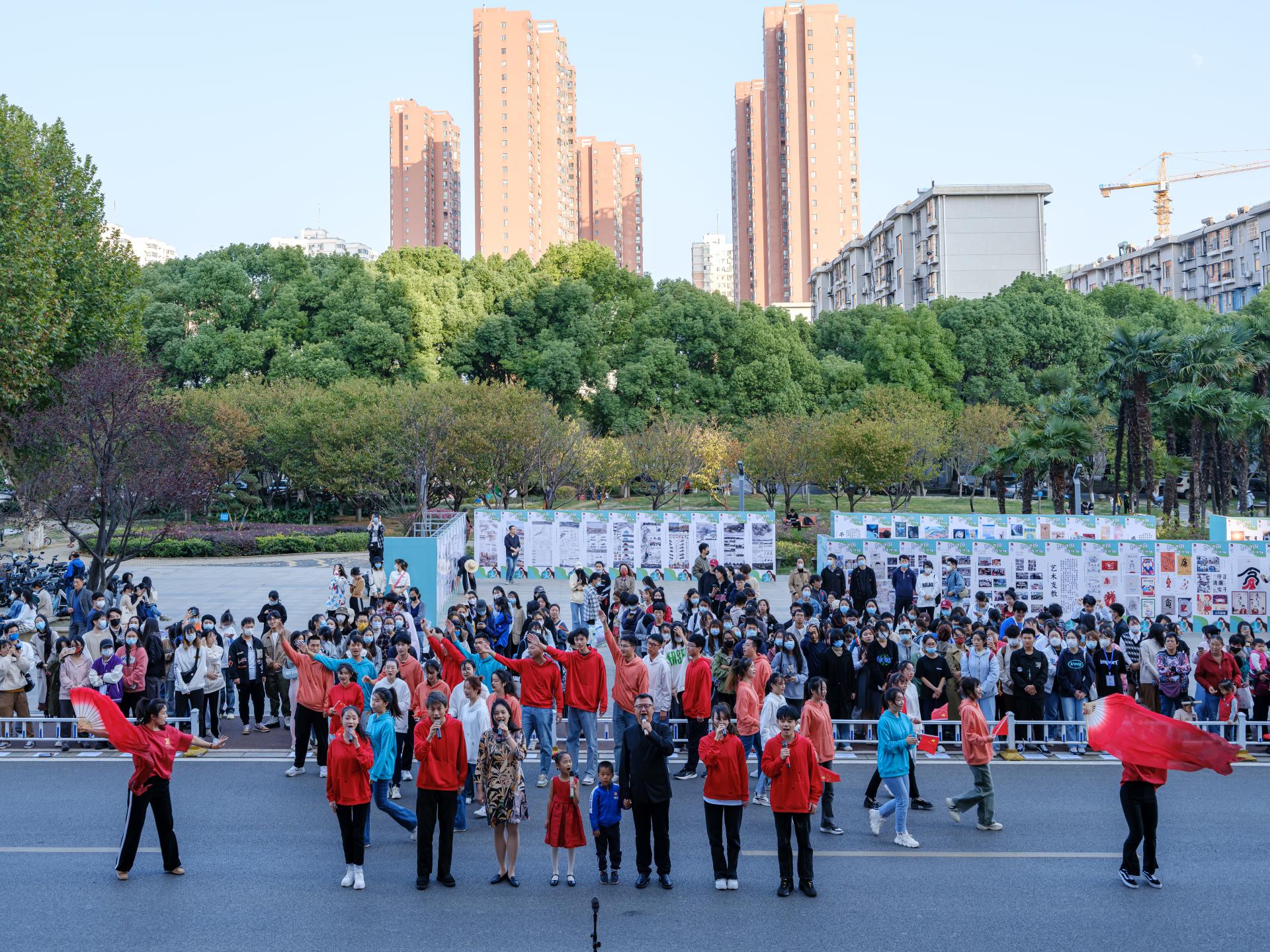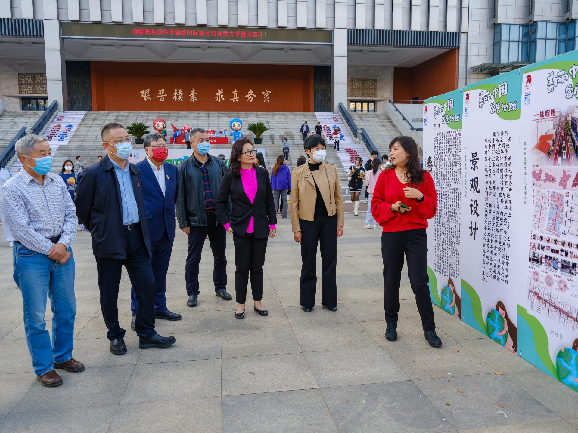 opta足球新闻网讯(通讯员 卫晶 杨滢 陈习良 摄影 程璜鑫)为庆祝学校建校七十周年,11月3日下午,“南望未来 艺熠生辉”百场文艺展演暨 “美丽中国 宜居地球”艺术作品展东区教学综合楼前开幕。校党委副书记、纪委书记唐忠阳,校党委常委、党委宣传部部长、校庆办主任储祖旺,湖北省科技传播学会会长、地球科学学院教授李长安,相关职能部门和学院负责人参加开幕式,艺术与传媒学院党委书记郭秀蓉主持开幕式。