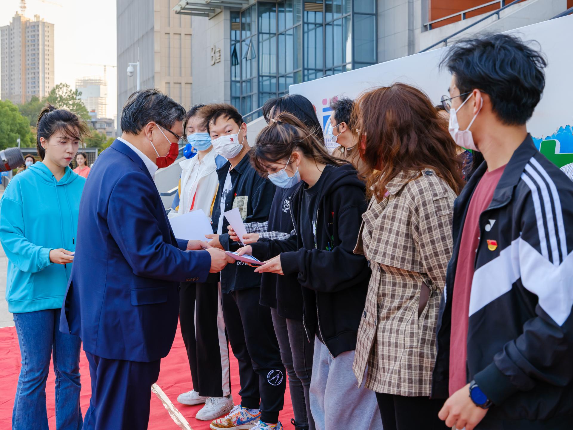 储祖旺、李长安、校纪委副书记唐勤分别为“美丽中国 宜居地球”湖北省科普微视频创作大赛、“美丽中国 宜居地球”艺术作品征集大赛、廉洁文化宣传设计大赛获奖师生代表颁奖。