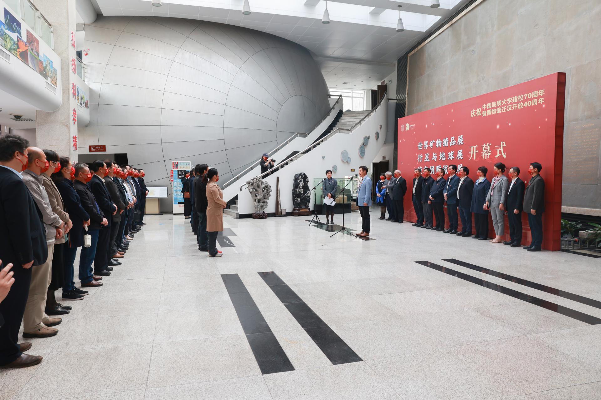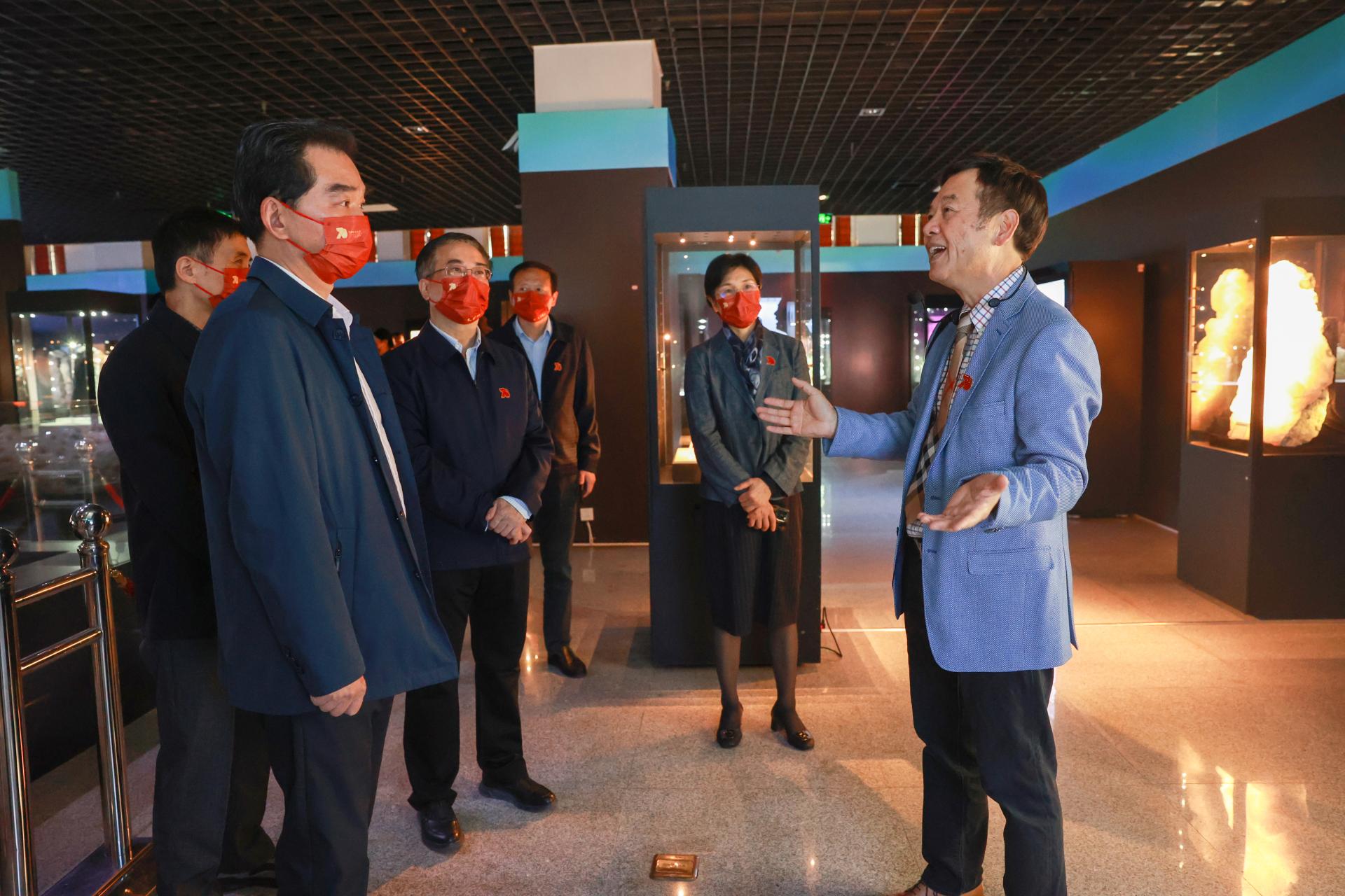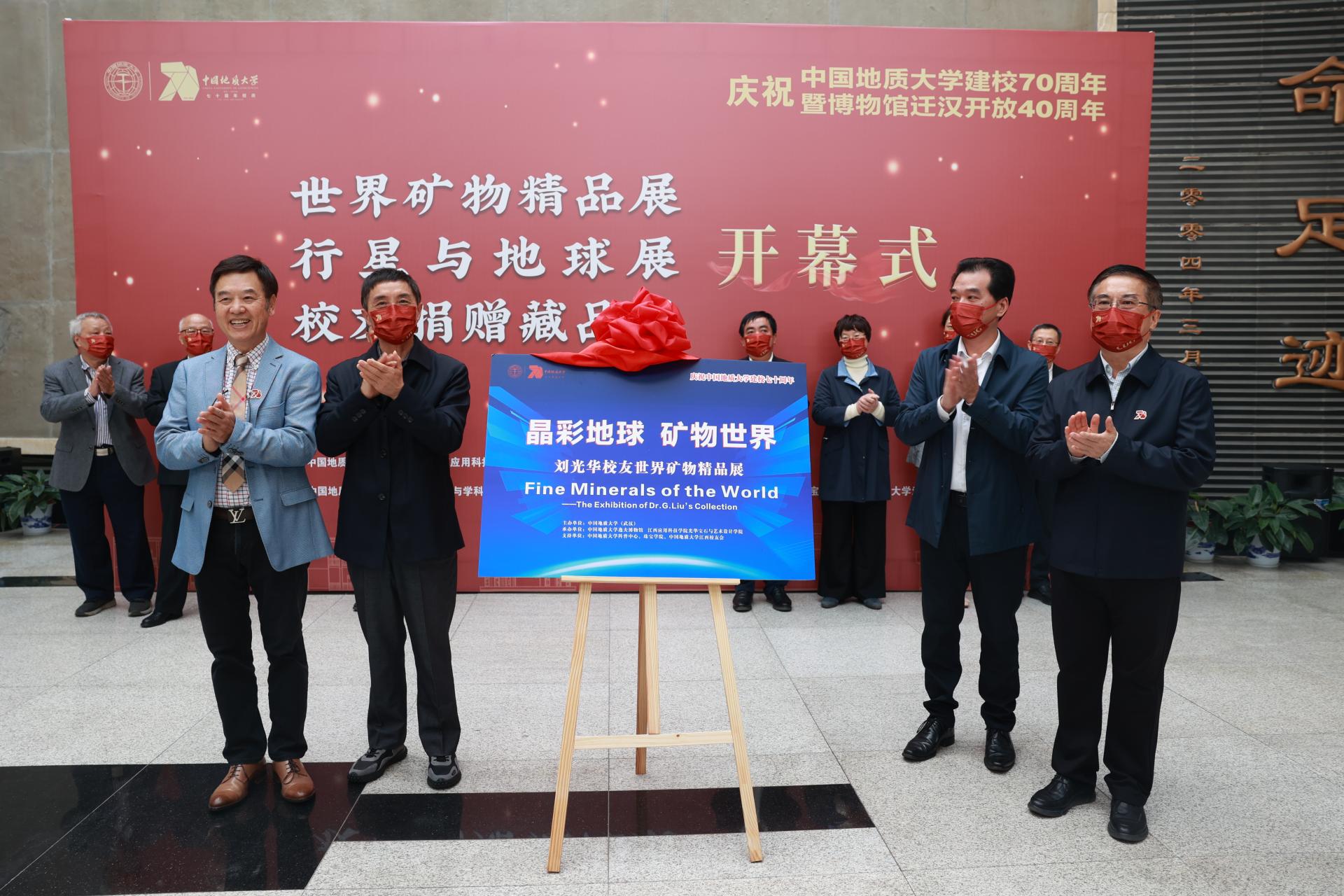 王焰新、陈祖刚、朱志斌、刘光华共同为“世界矿物精品展”揭幕。
