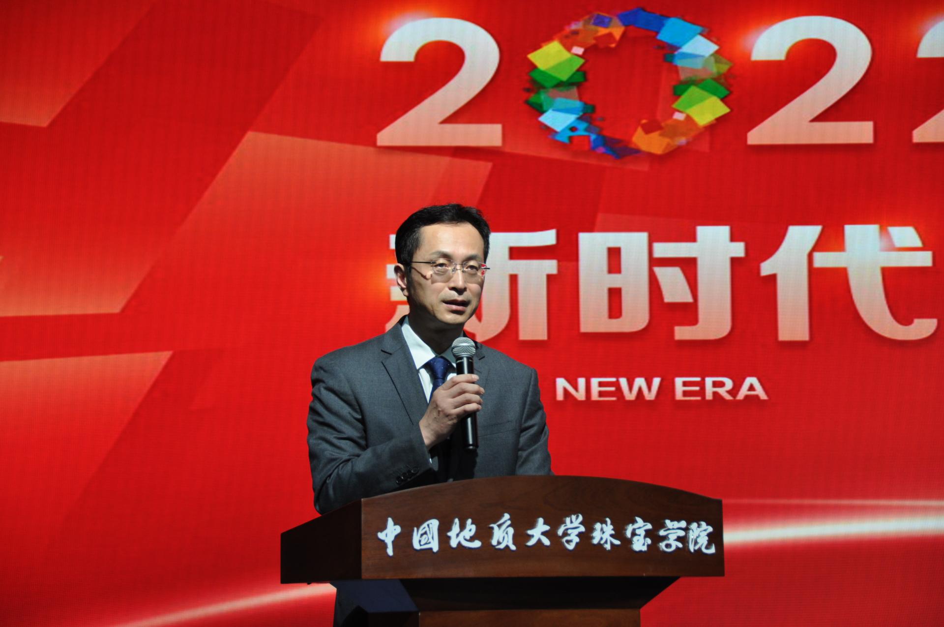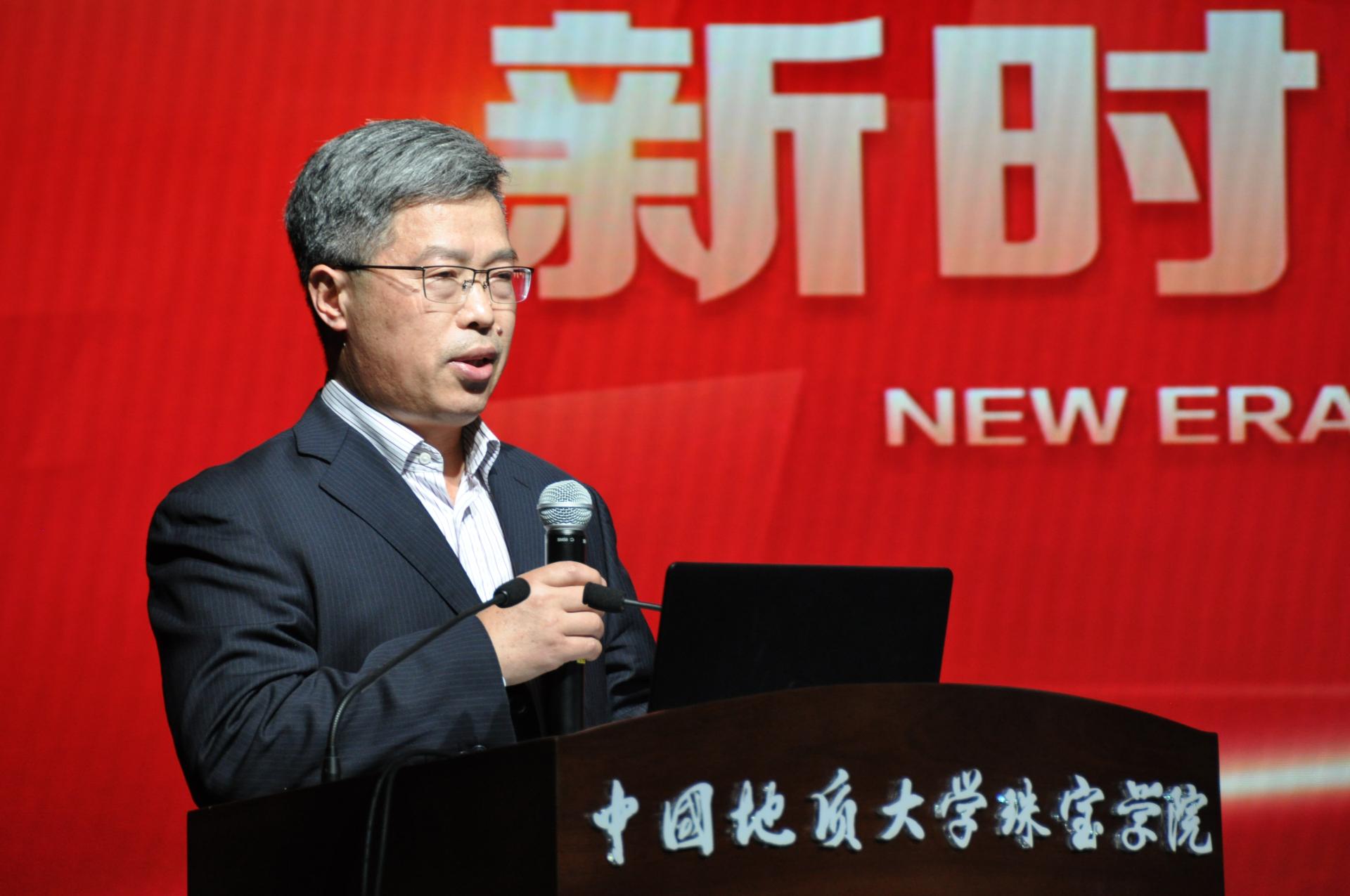 副校长王华致辞。他希望与会嘉宾加强交流,发表真知灼见,携手共进,深化产教融合,深入推进政产学研用协同,完整、准确、全面贯彻新发展理论,推动科技创新创造、文化自立自强和人才引领驱动,实现珠宝产业高质量发展。