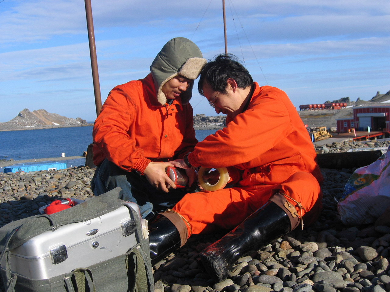 郑先昌校友(左)在南极中山站工作 受访者供图