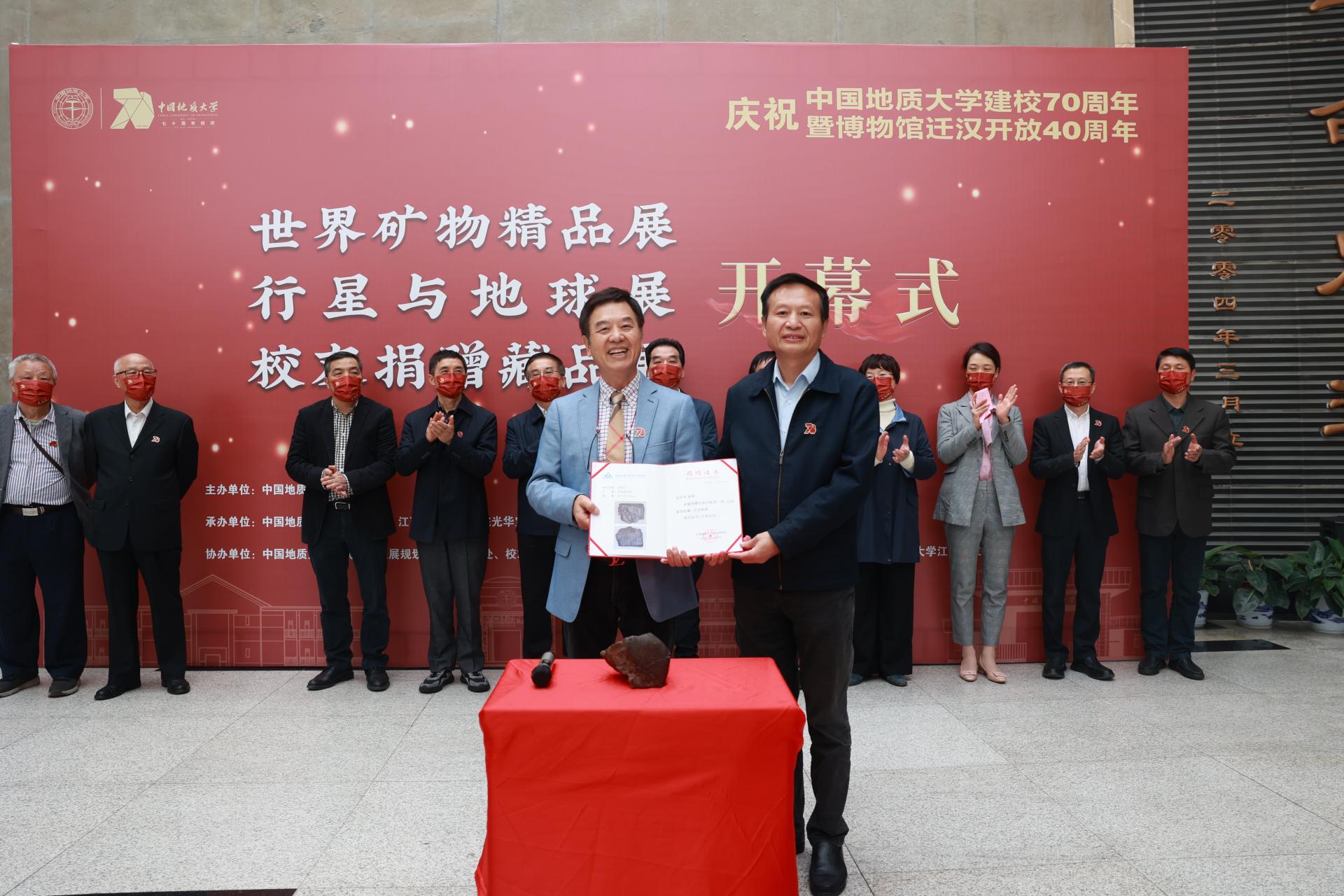 今年11月,他又提供了近300件来自世界各地的精品矿物晶体,在逸夫博物馆举办了“世界矿物精品展”,并将长期展览下去,为师生与游客提供打开一扇了解世界矿物宝石资源的窗口。此外,他还向母校捐赠了矿物与陨石标本近50件。他说:“在海外工作生活近40年,非常感谢母校的教育和培养,我要以实际行动回报母校、家乡和祖国!”