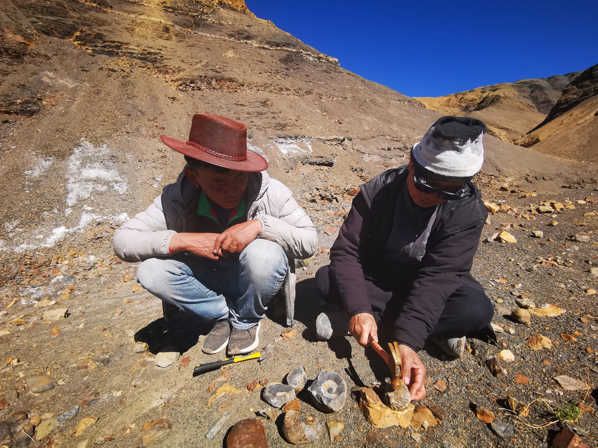 冯庆来教授(右一)带领学生在何元乡勘查化石资源 受访者供图