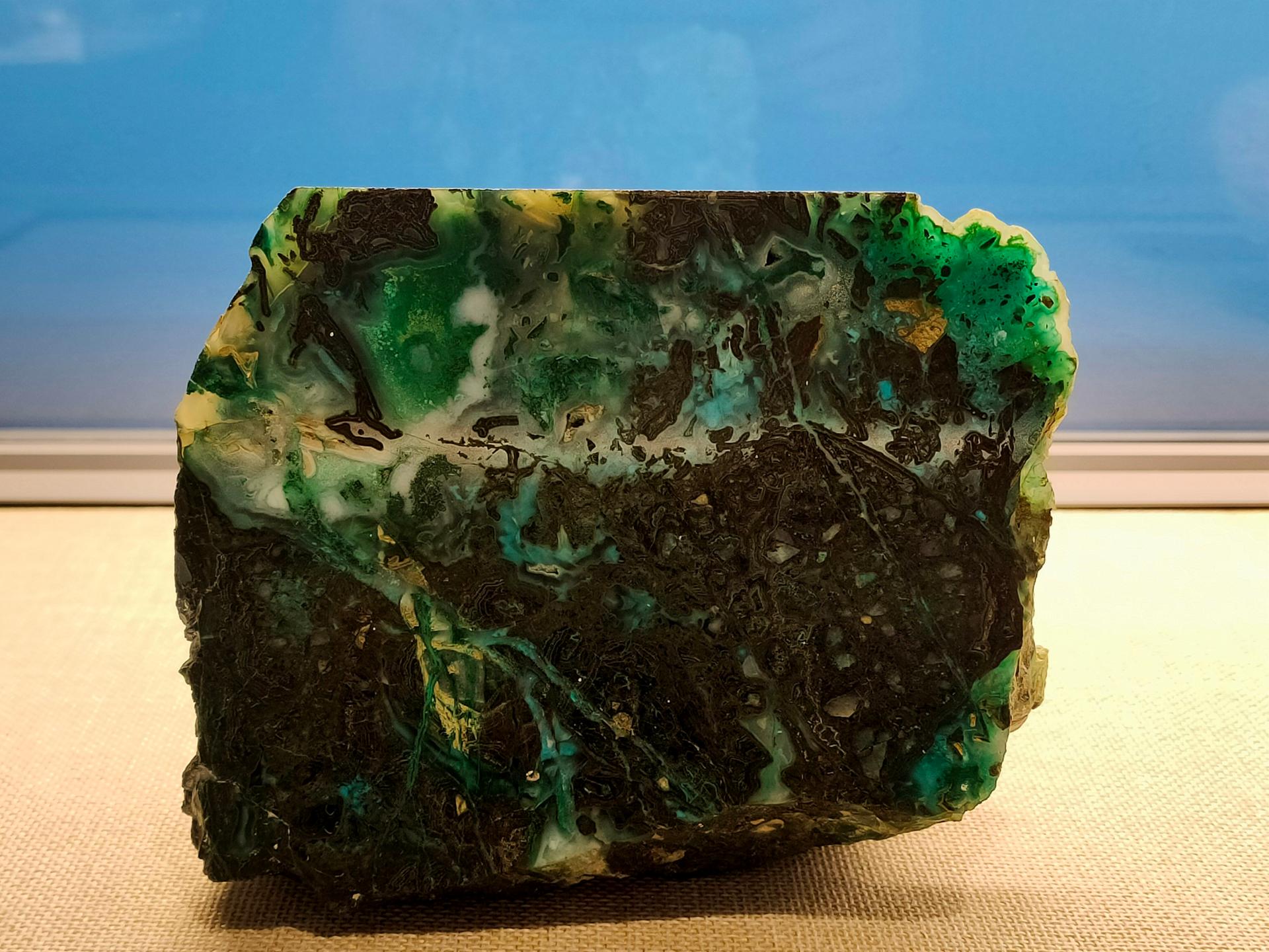 校友胡昌铭捐赠的硅孔雀石标本 李富强 摄