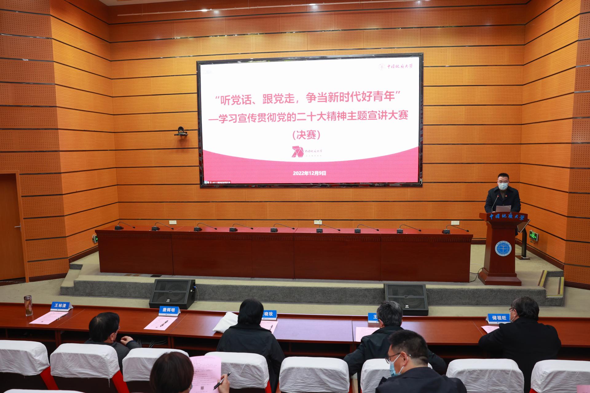 储祖旺作大赛点评。他高度肯定了10位选手的决赛表现,并对在全校师生中继续深入学习宣传贯彻党的二十大精神提出明确要求:要加强全面系统学习,从战略和全局高度完整、准确、全面理解把握党的二十大精神,增强学习贯彻的政治自觉、思想自觉、行动自觉;要加强理论学习转化,切实把思想和行动统一到党的二十大精神上来,听党话、跟党走,争当新时代的追梦人。