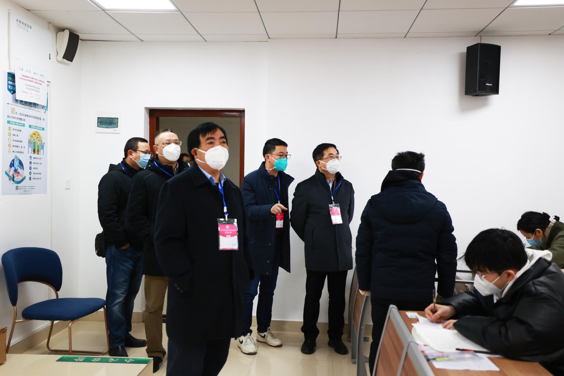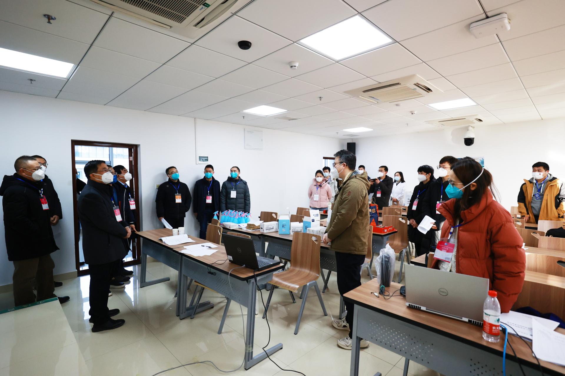 24日上午,校长王焰新一行巡视了考场,查看了试卷保密室、监控室、考场等情况,听取了考点负责人对研究生入学考试工作的汇报,慰问了考务、安保、后保、医院等部门工作人员,对疫情防控、试卷安全保密、考场设置、监考设施运行、医疗卫生、安全保卫等方面工作进行检查。