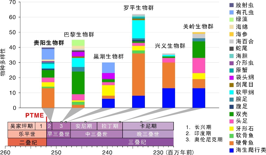 近5亿年来,地球上一共发生过5次生物大灭绝事件,其中2.5亿年前的二叠纪—三叠纪之交生物大灭绝事件是最为严重的一次,造成了超过80%海洋生物物种灭绝,同时促使海洋生态系统从古生代类型向现代类型转变。