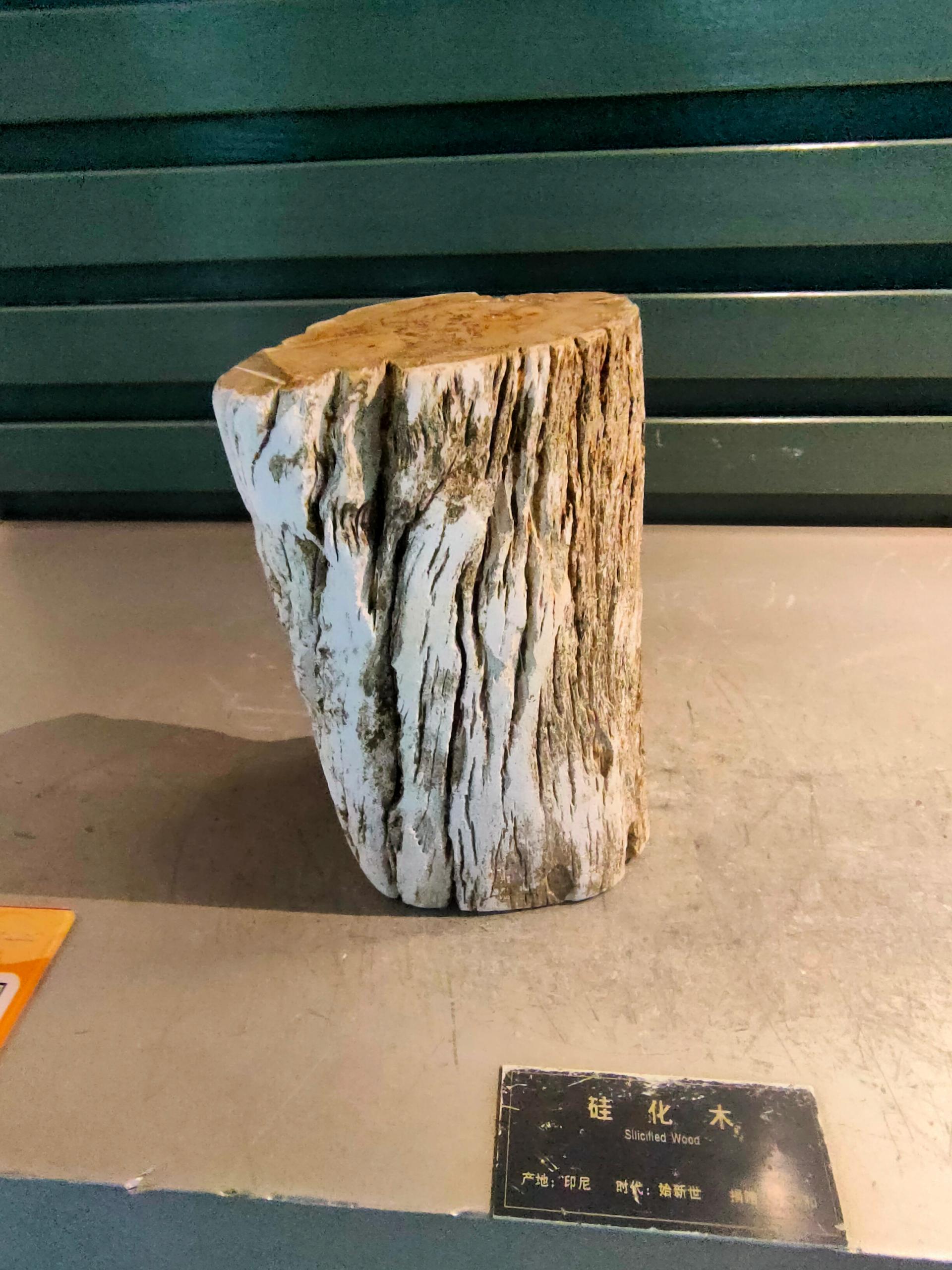 逸夫博物馆四楼“校友捐赠藏品展”展厅展出的这块钙化木化石,来自中侏罗世,产自鄂尔多斯盆地北部鄂尔多斯市东胜区神山沟,由全国模范教师、资源学院焦养泉教授在探查铀矿床时发现,向人们展示了远古鄂尔多斯地区的古植物和矿藏情况。(编辑 孙彦钦 审稿 陈华文)