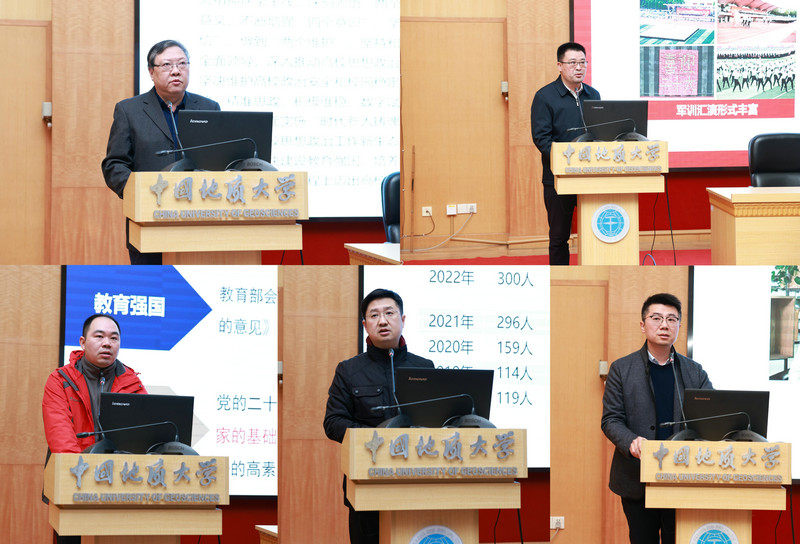 党委宣传部、本科生院、研究生院、人力资源部、马克思主义学院相关负责人,围绕会议主题,分别以《守正创新 协同联动 推动思想政治工作高质量发展》《探索构建“三位一体”本科生思政工作体系,助力学校打造“三全育人”工作格局,为培养拔尖创新人才贡献思政力量》《构建导学思政新格局 培养卓越导学文化》《守正创新 立德树人 扎实推进教师思想政治和师德师风建设》《思政课程建设现状与创新规划》为题,作大会交流发言。