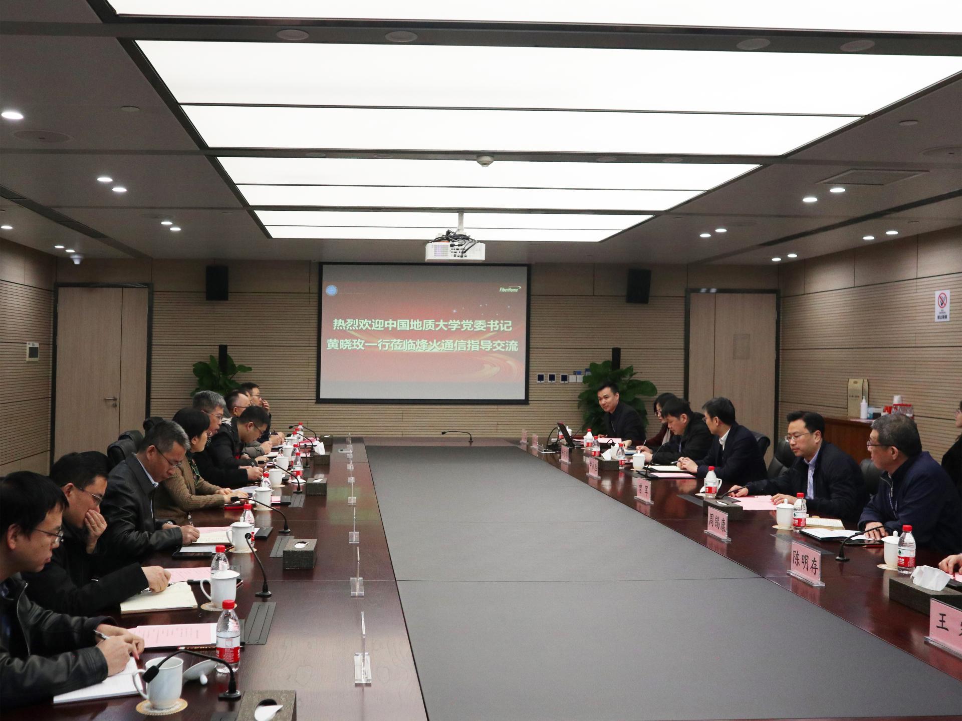 王华介绍了学校人才培养、学科专业、社会合作等方面的情况,希望同烽火通信公司一道加强核心关键技术研发,搭建科技创新平台,打造学生实习实践基地,促进学生高质量就业,探索校企合作新模式。