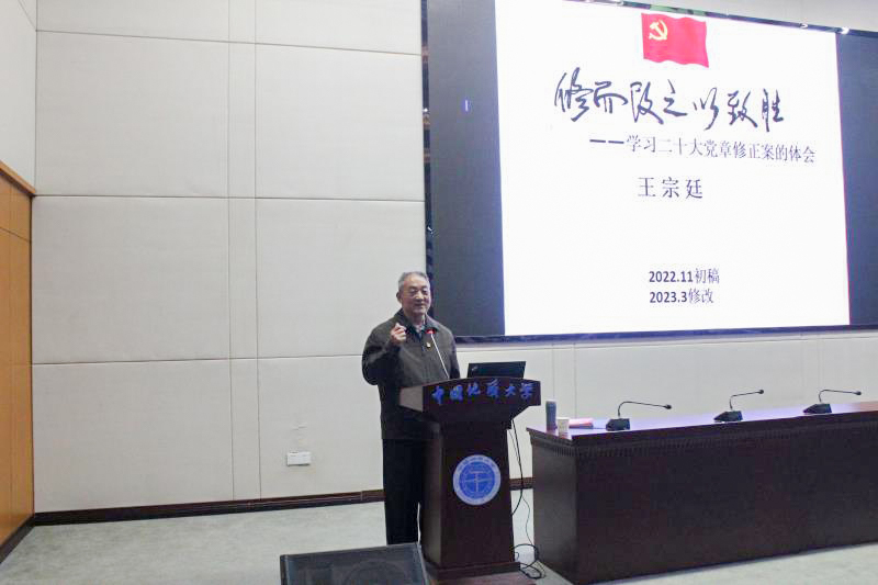 王宗廷讲到,党章宣示政治主张和信仰、体现党的成熟度,是立党治党管党的总章程、是具有最高权威的党内法规、是把握党的政治方向的根本准则、是坚持从严治党方针的根本依据、是党员加强党性的根本标准。与时俱进的党章,浓缩了党的波澜壮阔的奋斗历史,记录着党由弱小到强大的发展轨迹,展示着党成长、成熟到成功的实践历程。新修改的党章概括起来共有九个大的方面,充分体现马克思主义中国化时代化最新成果、党的十九大以来党中央提出的治国理政新理念新思想新战略、适应新形势新任务对党的工作和党的建设提出的新要求。就如何更加科学化深刻把握党章的新思想,他建议学习政治报告与新党章相结合、学习与辅导交流和研讨相结合、自学与组织学习相结合、学习与工作相结合、继承与创新相结合。