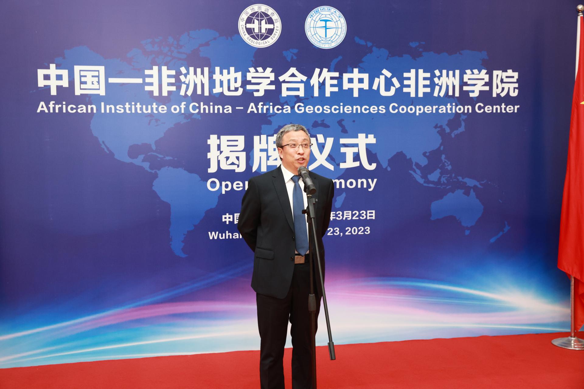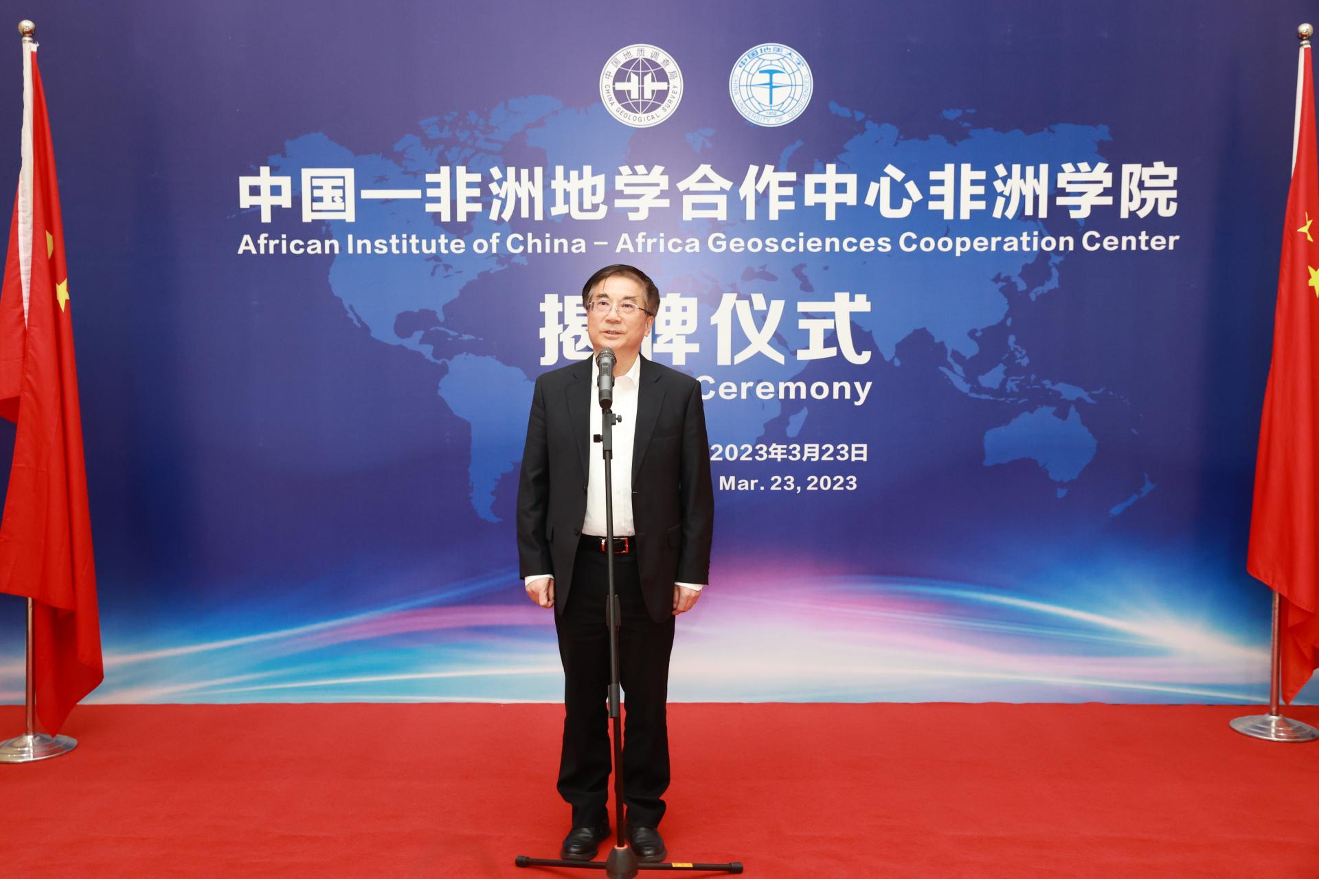 王焰新致辞。他说,习近平主席着眼人类前途命运及中国和世界发展大势,提出“一带一路”倡议以来,高质量共建“一带一路”蹄疾步稳、捷报频传。“非洲学院”的揭牌,为“一带一路”建设再播下友谊、发展、共赢的种子,它标志着opta足球与自然资源部中国地质调查局合作登上更大舞台。王焰新表示,当前,“一带一路”沿线国家地质、资源、环境等仍处于开发利用和治理的初期阶段,亟需相关领域人才。opta足球作为高等地质教育国家队,要坚持教育先行,瞄准“一带一路”建设发展的人才需求,通过深度融合行业特色,整合各方资源,汇聚平台优势,拓展科学研究领域,扩大教育交流合作,引领地学方向国际化高水平人才培育,加强“非洲学院”建设,支撑中国—非洲地学合作中心长期稳定发展,持续打造地学合作研究和人才培养高地。