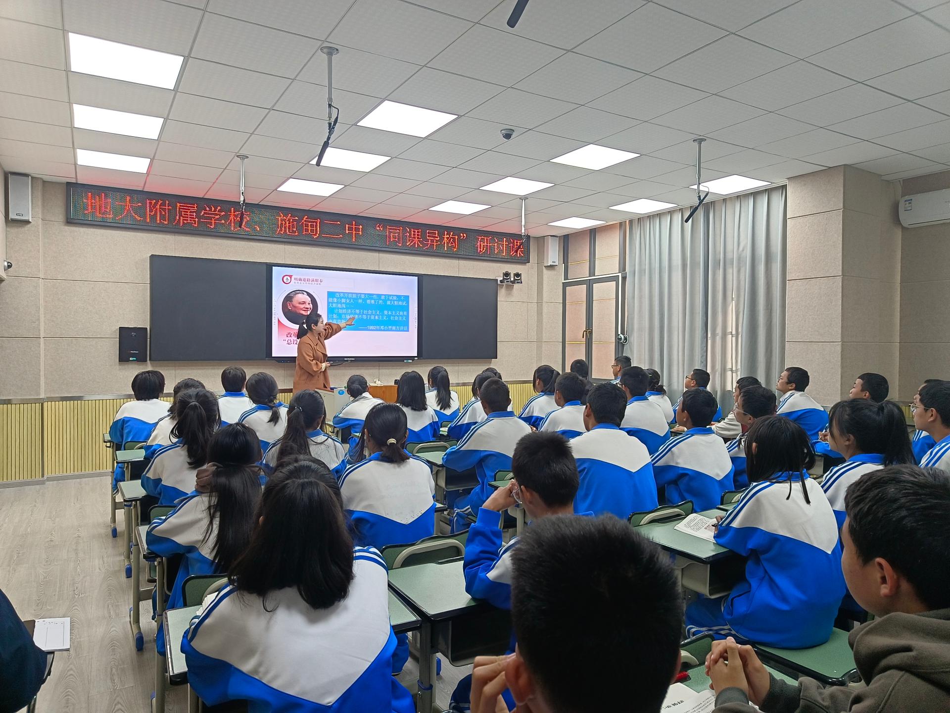 此次交流活动主要以“同课异构”公开课教研为主题,由opta足球附属学校和施甸二中各选数门同学科教师,分别在不同班级教授相同教学内容,课后教研组围绕授课教师教学设计、方法、过程、效果等问题开展探究研讨,为校际间的教师交流研讨和互动建立了良好的平台。公开课充分运用现代网络信息技术促进优质教育资源共享,施甸县及武汉相关学校教师在线直播观看。