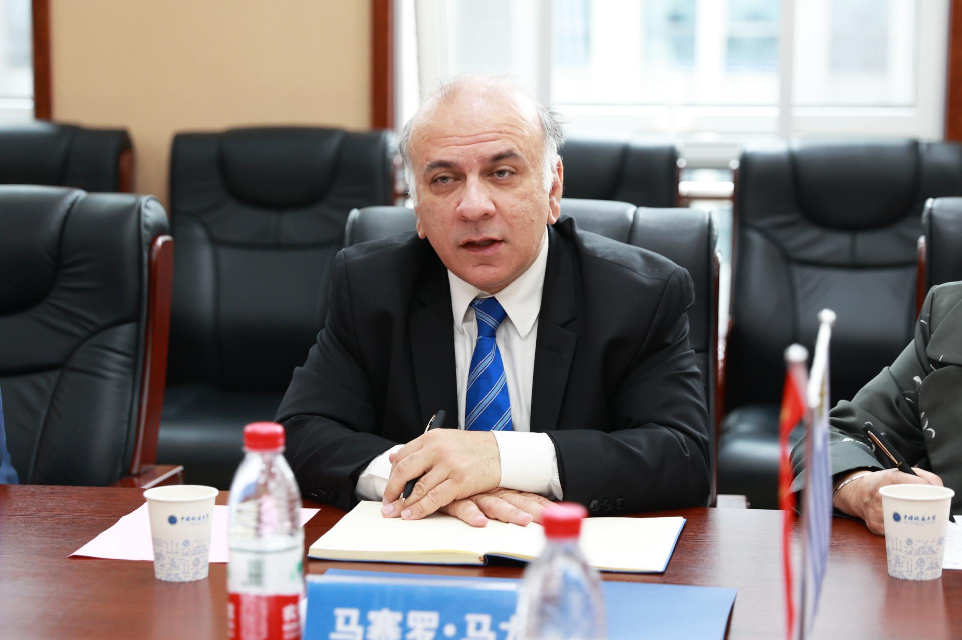 王林清欢迎马塞罗·马龙一行来访,并从历史沿革、学科特色和办学情况等方面,介绍了学校相关情况。他表示,学校愿积极参与中乌共商生态保护大计、共建地球生命共同体的行动计划,着力推动绿色“一带一路”国际合作,与乌方高校和科研机构在海洋科学、新能源开发、环境保护、矿产、南极科考等领域建立战略伙伴关系,共同构建生态环保的绿色机制、编织交流合作的绿色网络、培养生态文明领域的绿色国际人才,为全球生态治理贡献智慧和力量。