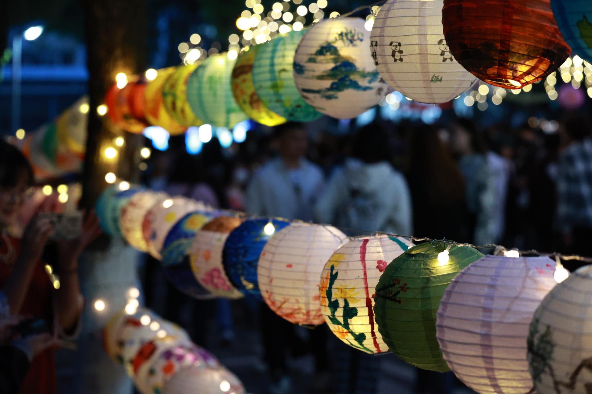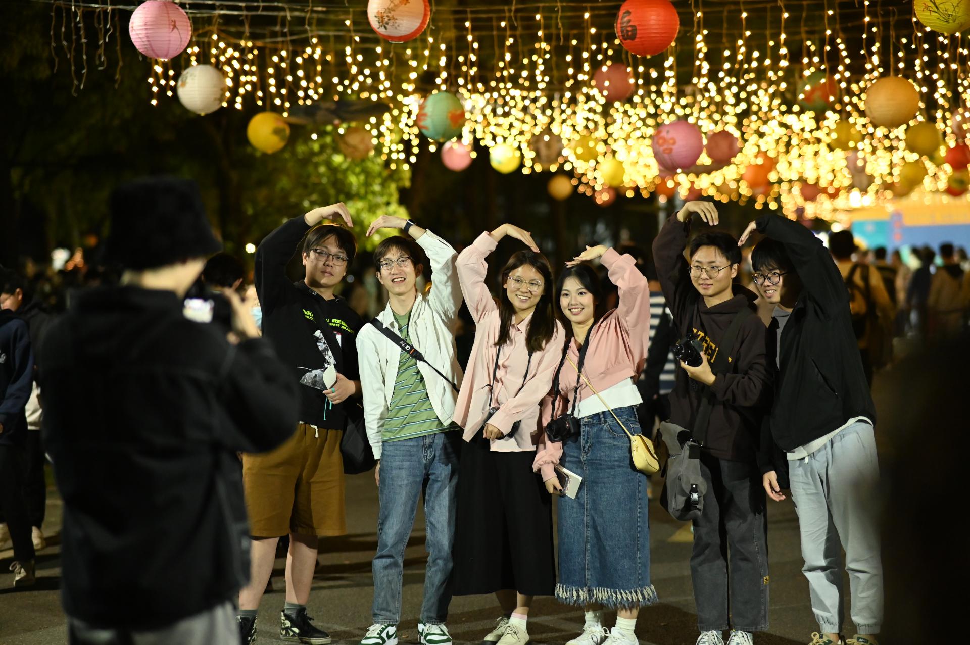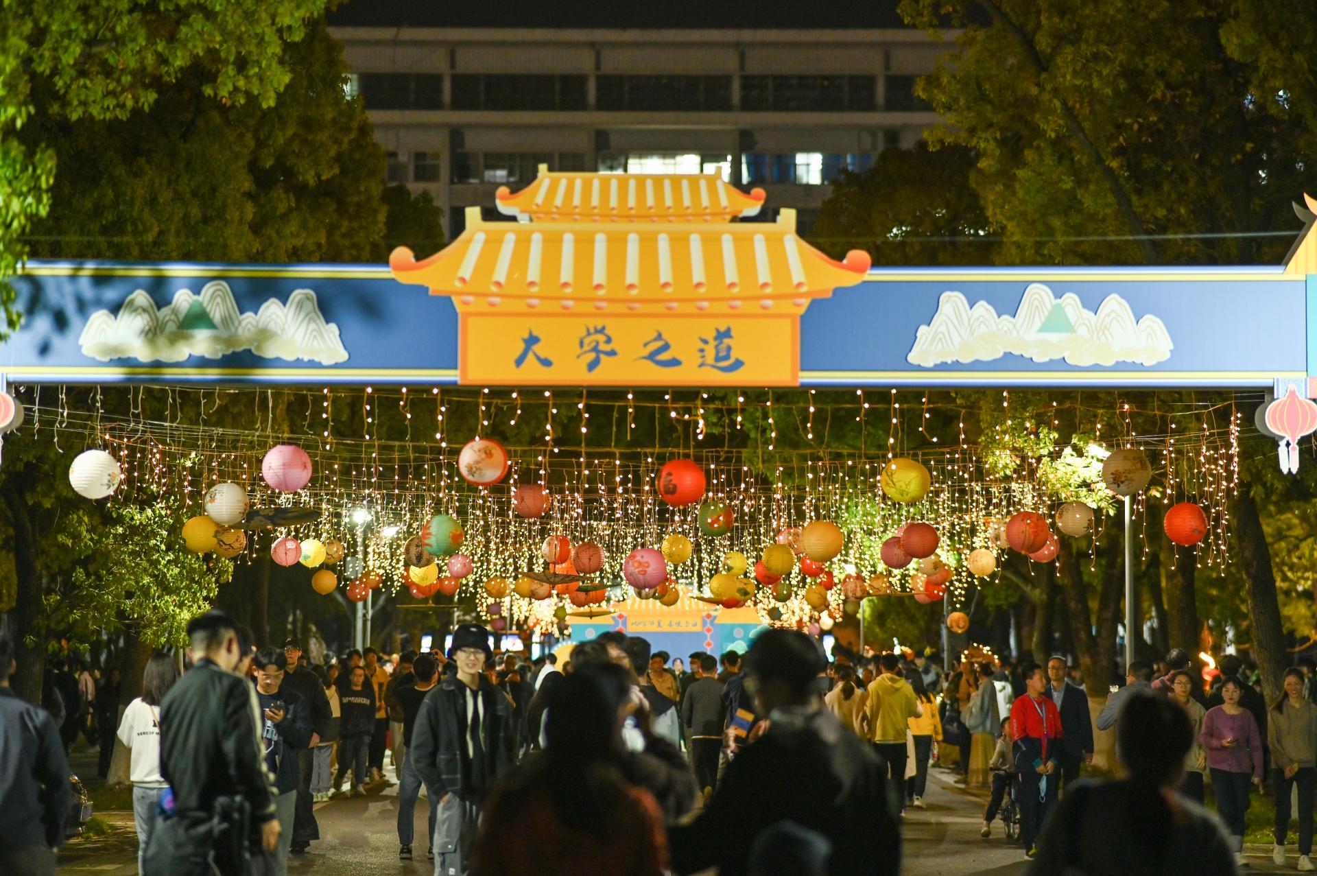 在院士长廊前,舞龙、舞蹈、汉服秀等精彩节目轮番上演;社团集市摊点前,灯谜、投壶、蹴鞠等互动项目热闹非凡;树林中,风格各异的造型景观让人目不暇接。灯火璀璨的夜晚,无尽的人潮涌动,处处载歌载舞、欢声笑语,在灯与影的交相辉映下,校园里活力四射。“好久没有参加过这样盛大的活动了,这才是大学校园生活应该有的样子!”同学们纷纷表示。