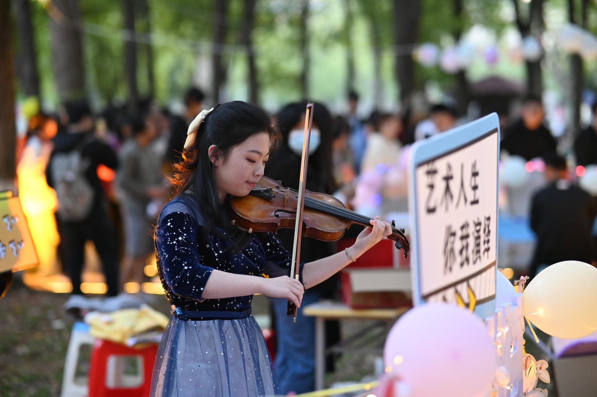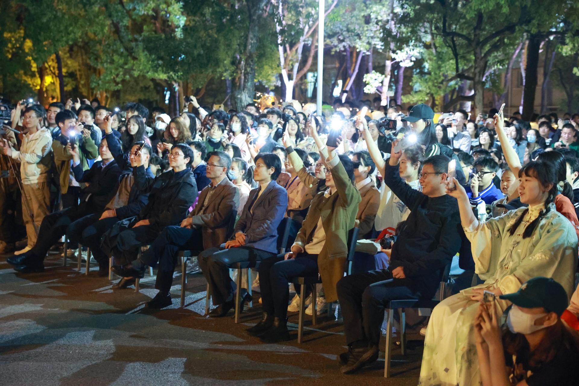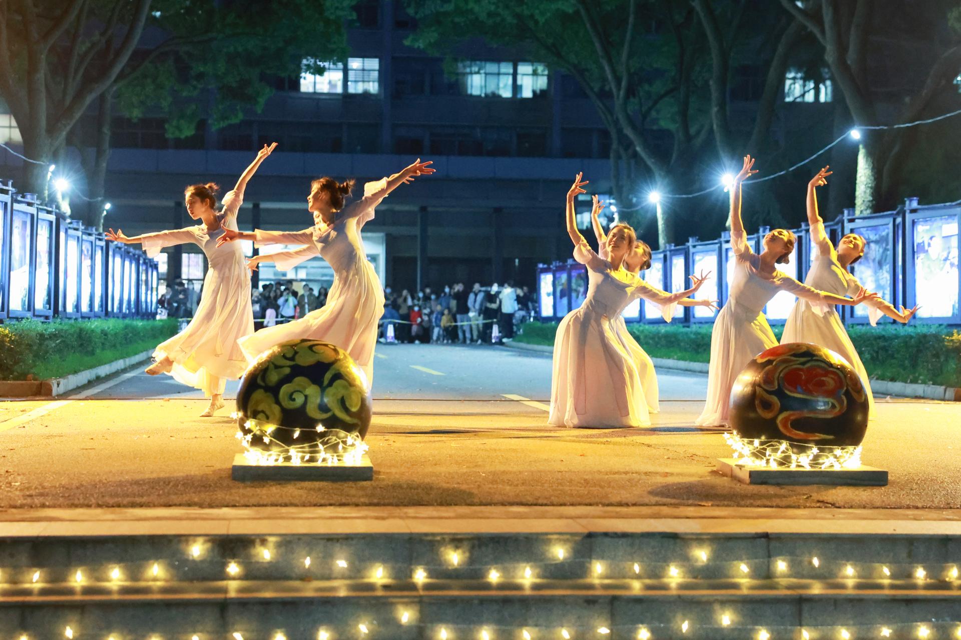 在院士长廊前,舞龙、舞蹈、汉服秀等精彩节目轮番上演;社团集市摊点前,灯谜、投壶、蹴鞠等互动项目热闹非凡;树林中,风格各异的造型景观让人目不暇接。灯火璀璨的夜晚,无尽的人潮涌动,处处载歌载舞、欢声笑语,在灯与影的交相辉映下,校园里活力四射。“好久没有参加过这样盛大的活动了,这才是大学校园生活应该有的样子!”同学们纷纷表示。