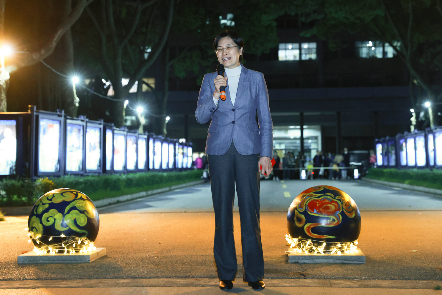 黄晓玫宣布灯会正式开始,她代表学校向所有为本次灯会付出辛劳的师生表示感谢,她说:“希望同学们从今天开始,唱起来、跳起来、快乐起来、健康起来,珍惜在学校的美好时光,一起努力把学校建设得更加美好。”