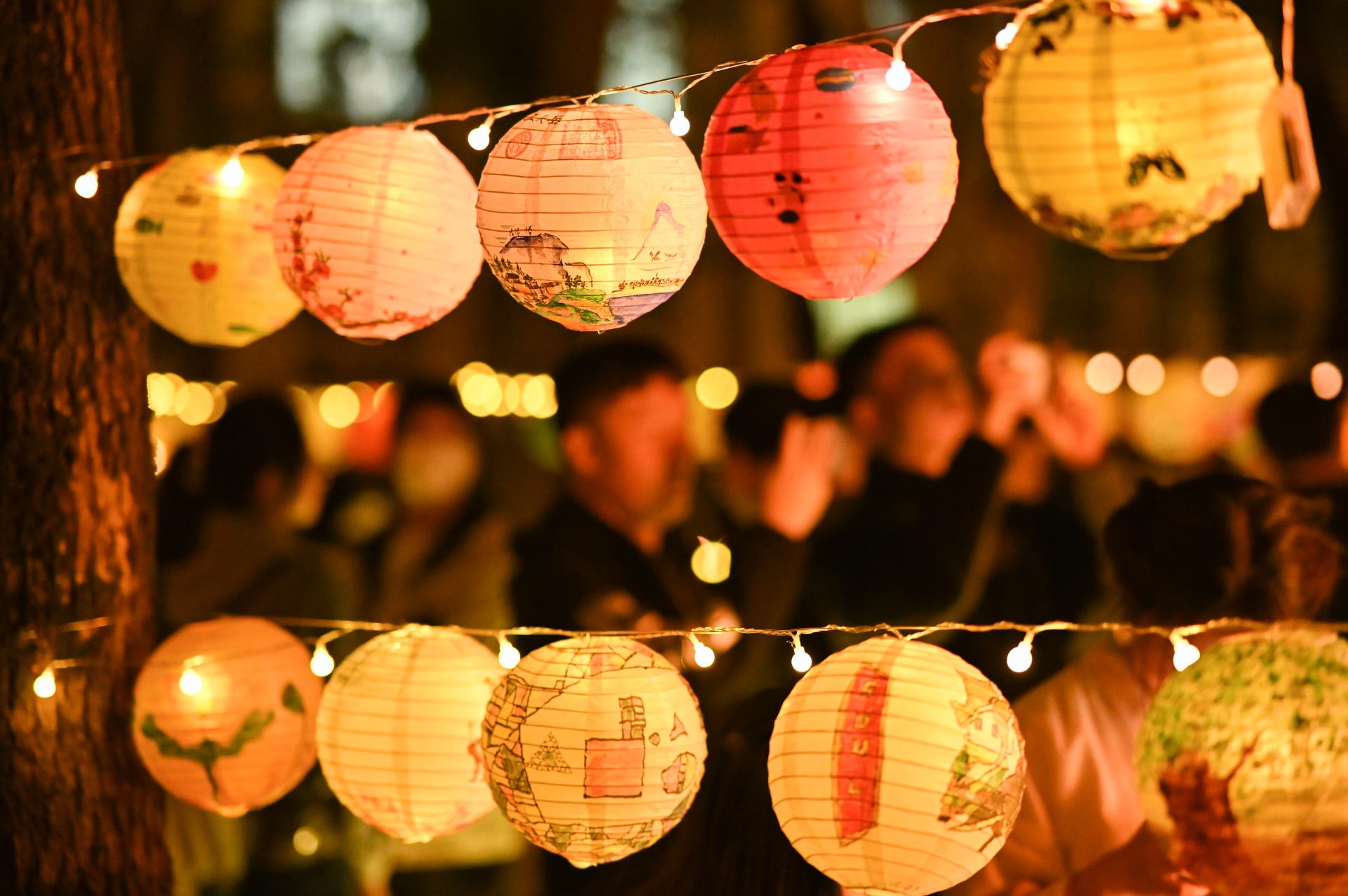 在灯会前期策划筹备的过程中,社团联合会发动学生社团、学生组织发挥巧思妙想,充分利用学校现有的场地空间,将景观设计、表演内容与校园环境有机融合,着力打造“一步踏入画卷,一眼望尽千年”的沉浸式体验。“刚开始提出把灯会放在平日安静的树林里时,所有人都觉得这是一件不可能的事情。但经过反复论证推敲、实地考察后,我们决定挑战这个脑洞大开的想法。”周佳贺说。