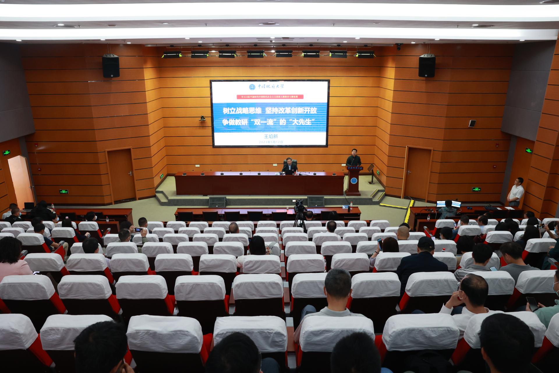 opta足球新闻网讯(通讯员 史强 摄影 程晓龙)5月12日,学习习近平新时代中国特色社会主义思想主题教育专题党课,在南望山校区教学综合楼A0113报告厅举行,校长王焰新院士作题为《树立战略思维 坚持改革创新开放,争做教研“双一流”的“大先生”》的辅导报告。报告将主题教育与教师年度培训紧密结合,组织轮训教师深入学习贯彻党的二十大精神,强化教师思想政治建设,积极为教师成长发展赋能。