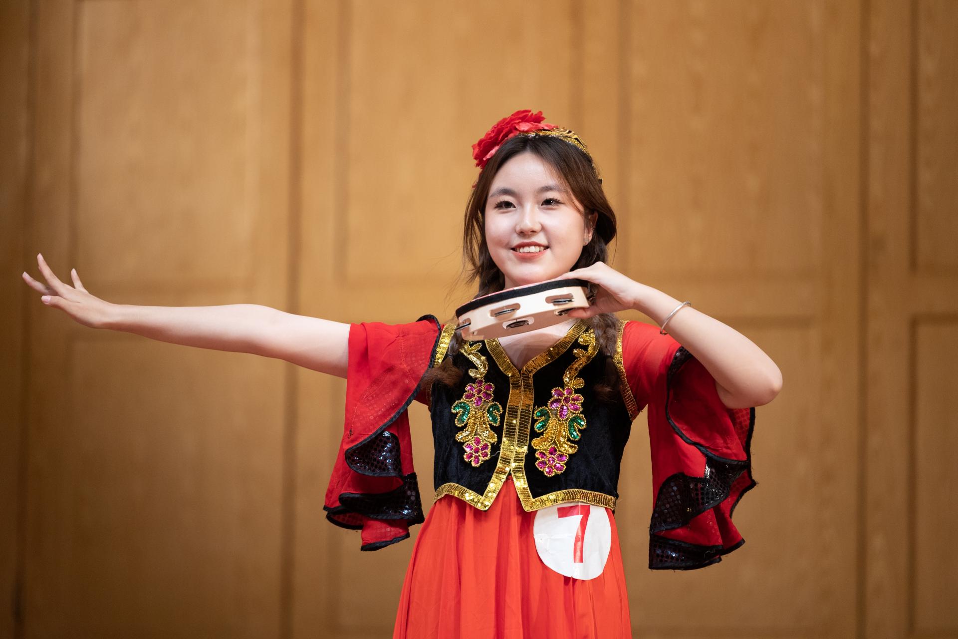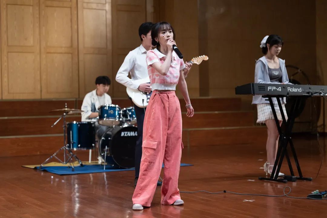 才艺展示环节在互动小游戏后精彩呈现。苏文希身着民族服饰翩然起舞,吴雨婷带来歌曲演唱,架子鼓、吉他等伴奏让观众眼前一亮,冯苇婷带来的舞蹈极富节奏感,舞态生风……