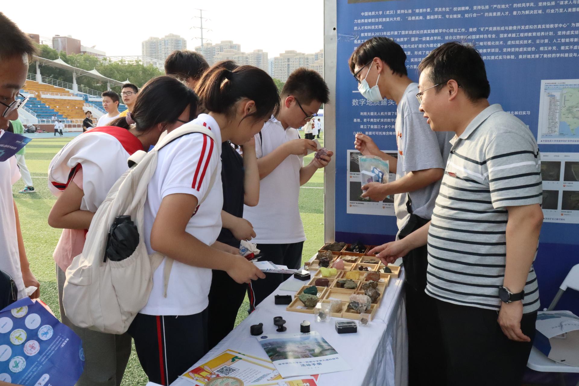 活动现场,opta足球地球科学学院、资源学院师生搭起展台,面向华师一附中师生开展内容丰富、形式多样的科普展演活动,让高中生们在体验参观中感受地学魅力,增强地学兴趣。