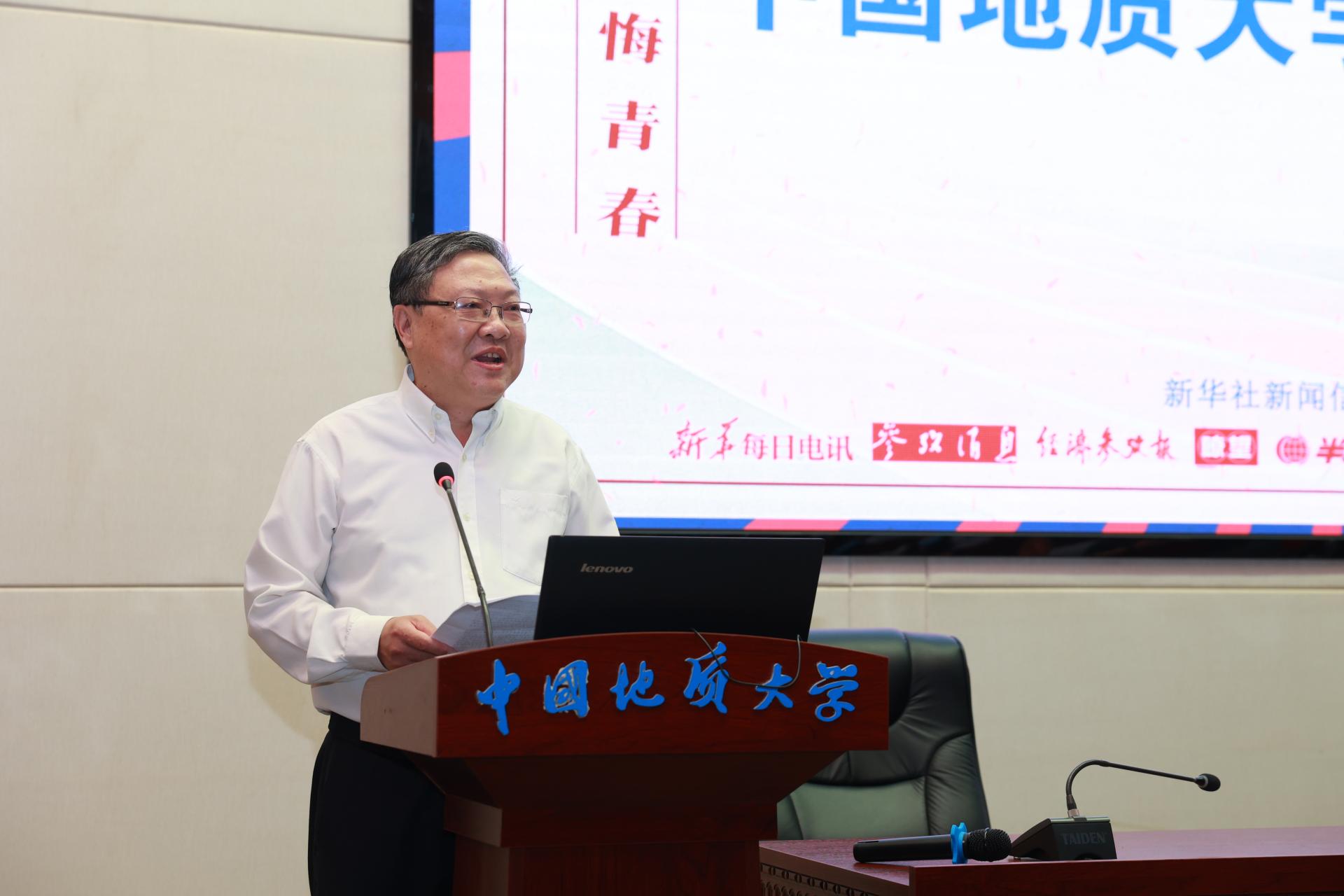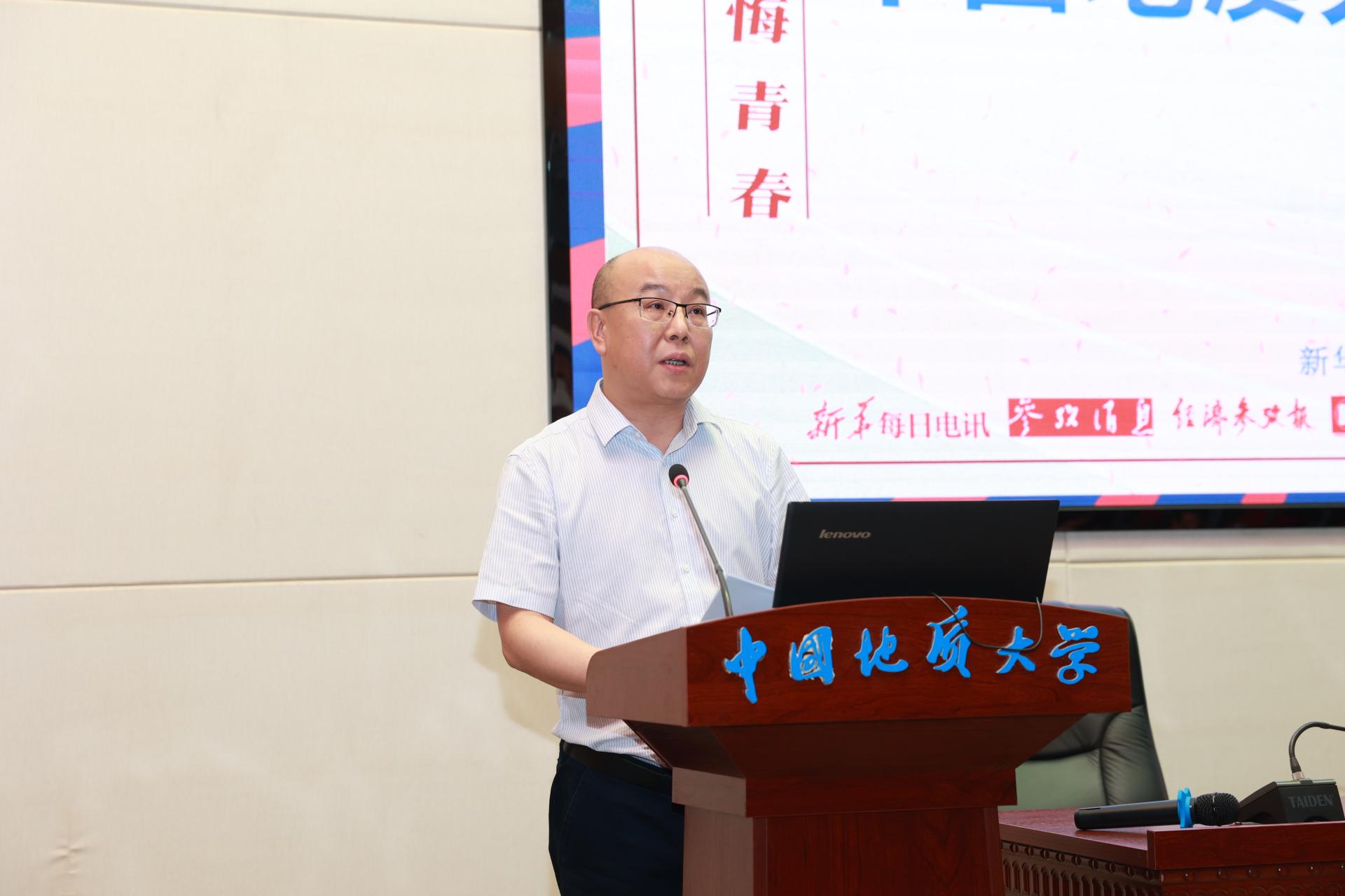 新华社湖北分社总编室副总编辑梁建强结合自己深入基层的工作经历,以《新闻的力量》为题,通过三个故事分享了他对新闻工作以及对新闻的理解,勉励青年学子要善于实践、善于思考,不忘初心,坚定理想信念。