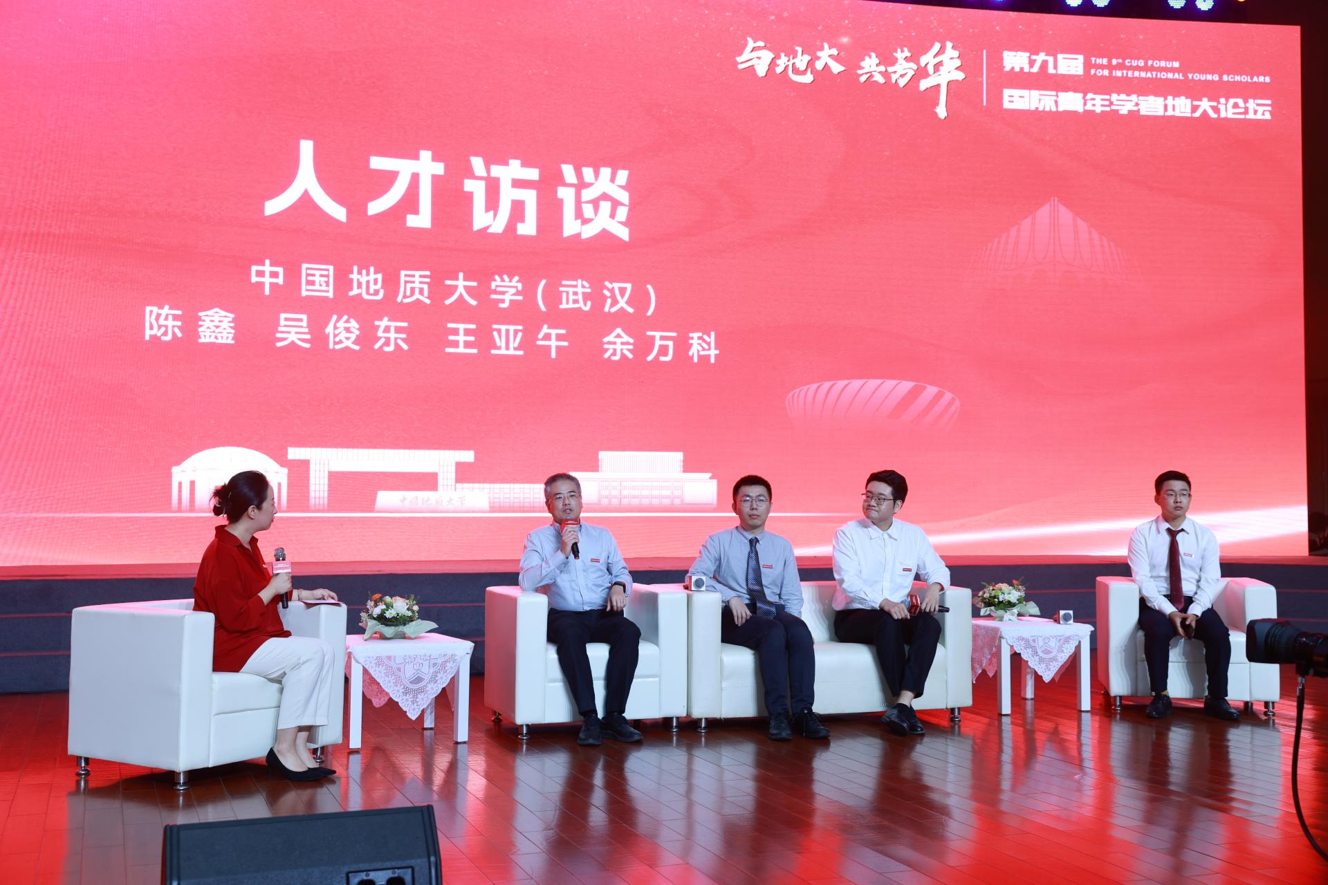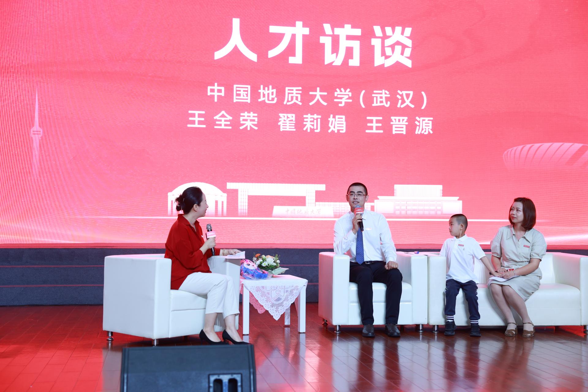 本届主论坛还设置了“人才代表”访谈环节,分为家庭组、师生组和团队组,通过面对面交流,让海内外学者更好地了解和感受学校为青年人才提供的良好工作环境、生活环境和团队氛围。外国语学院副教授姚夏晶担任访谈环节主持人。环境学院王全荣教授及其家人作为家庭组访谈嘉宾,分享了在学校工作、生活的状态。地球科学学院宋海军教授及其学生宋汉宸作为师生组访谈嘉宾,展示了学科建设传承创新,师生互动共同成长的心路历程。自动化学院先进控制与智能自动化团队的陈鑫教授、吴俊东老师、王亚午老师、余万科老师作为团队组访谈嘉宾,呈现了学校科研团队凝聚力量、潜心科研、同向发力、互融共促的团队氛围。