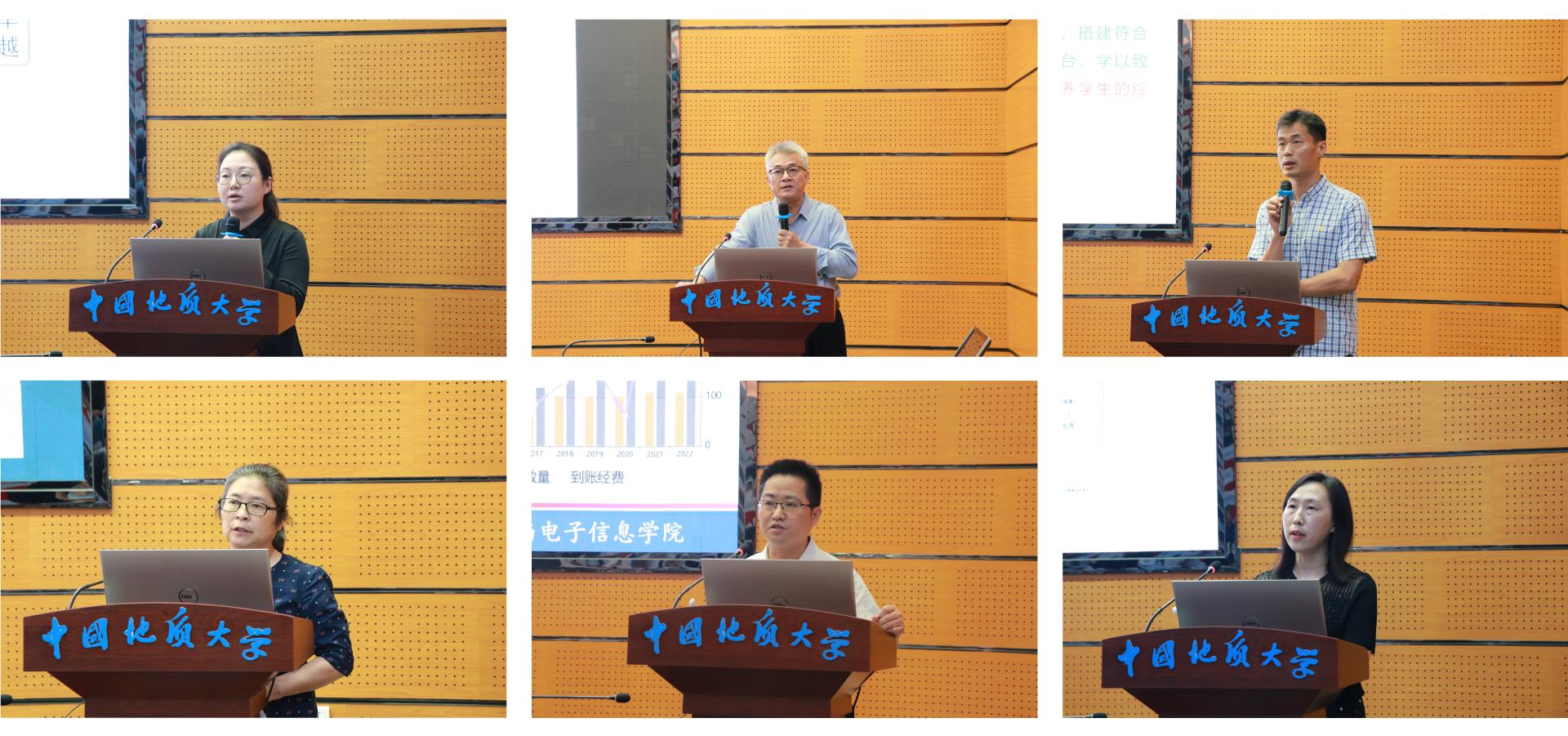 资源学院矿床学导学团队、工程学院深部钻探与能源地质工程导学团队、海洋学院陆海空间探测与评估导学团队、艺术与传媒学院地学科普传播导学团队、数学与物理学院微分方程与动力系统导学团队、地球科学学院行星地质学导学团队、资源学院构造—成藏年代学导学团队、地球科学学院和地矿国重的岩石圈演化导学团队、体育学院户外教育与思想政治教育融合导学团队、地球科学学院特提斯及古生物演化导学团队、机械与电子信息学院工程机械设计及其自动化导学团队、环境学院环境水文地质导学团队、材料与化学学院可持续能源技术与应用导学团队、资源学院沉积过程与动力学导学团队、经济管理学院南望学苑品牌研究导学团队、地理与信息工程学院高性能空间计算智能实验室导学团队、公共管理学院国土空间治理与城乡发展导学团队、自动化学院控制理论与控制工程导学团队、计算机学院智能学习与信息自动化处理导学团队等19个导学团队的导师代表,依次进行汇报。