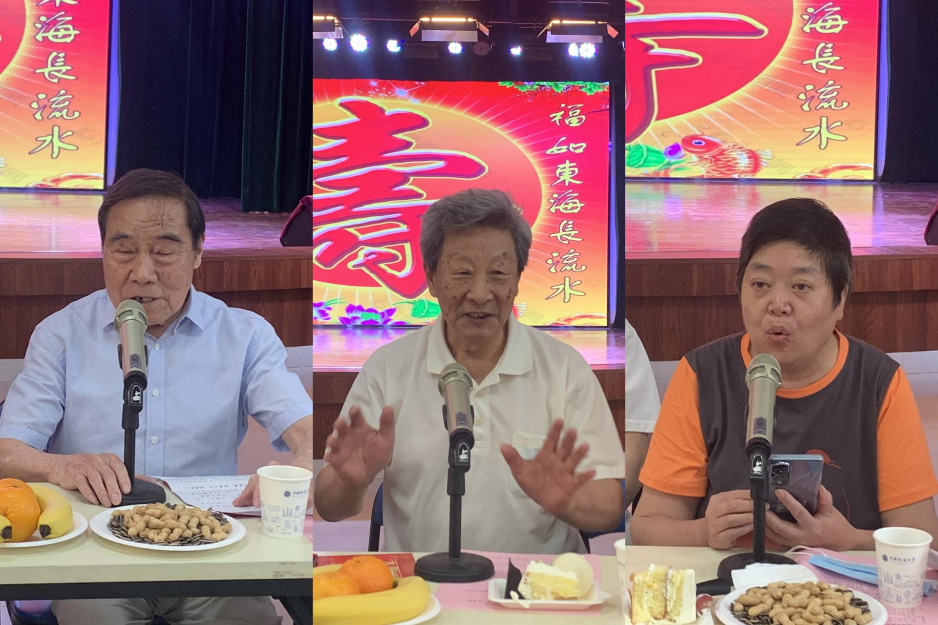 所有寿星集体合唱《勘探队员之歌》。90岁的王树帆教授说:“我的心底里蹦出两个字,感恩。时代的辉煌和伟大祖国的强盛,让我们老有所养、老有所为、老有所乐。”
