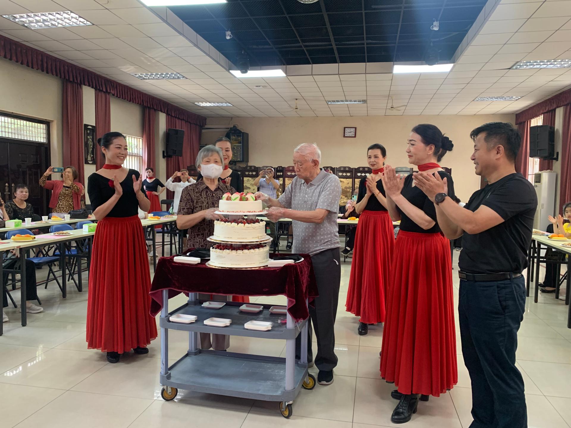 老协同心合唱组唱响的《生日快乐歌》开启了庆祝环节,同过80岁生日的蔡鹤生、陈银琢夫妇作为寿星代表吹寿烛、切蛋糕,与会人员同唱《生日快乐歌》。欢快潇洒的舞蹈、刚柔相济的太极拳、靓丽精彩的模特秀,把生机与活力传递给每位寿星。