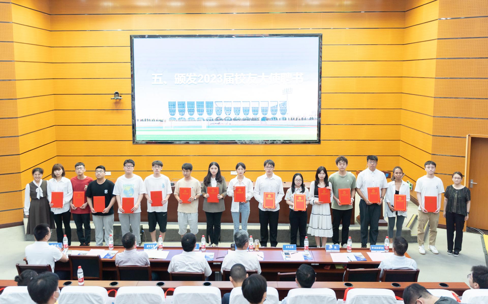 校团委副书记郭小玉、本科生院副院长肖梦琼为本科生校友大使代表颁发聘书。