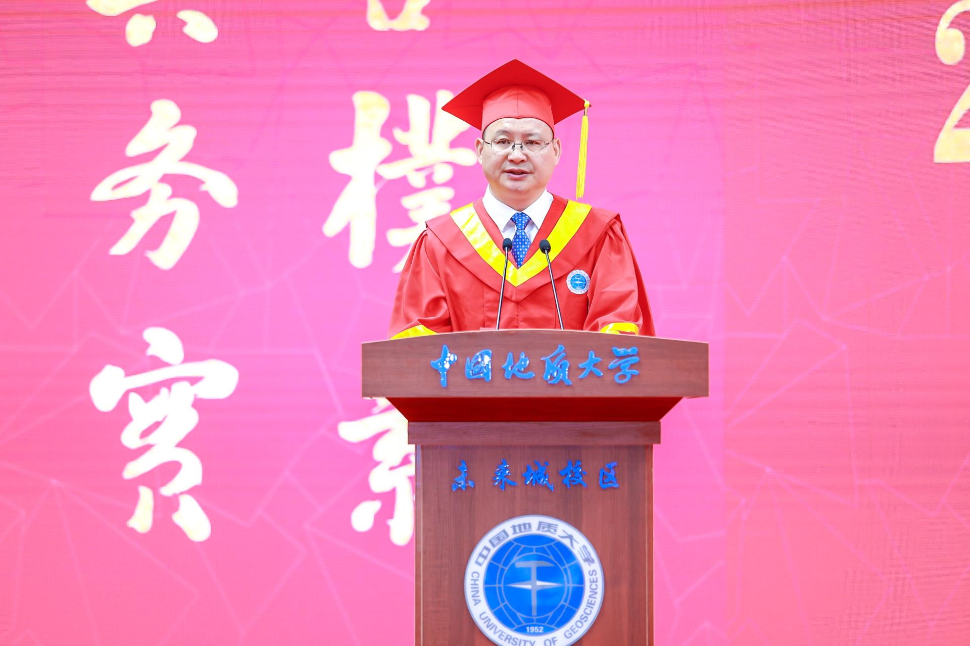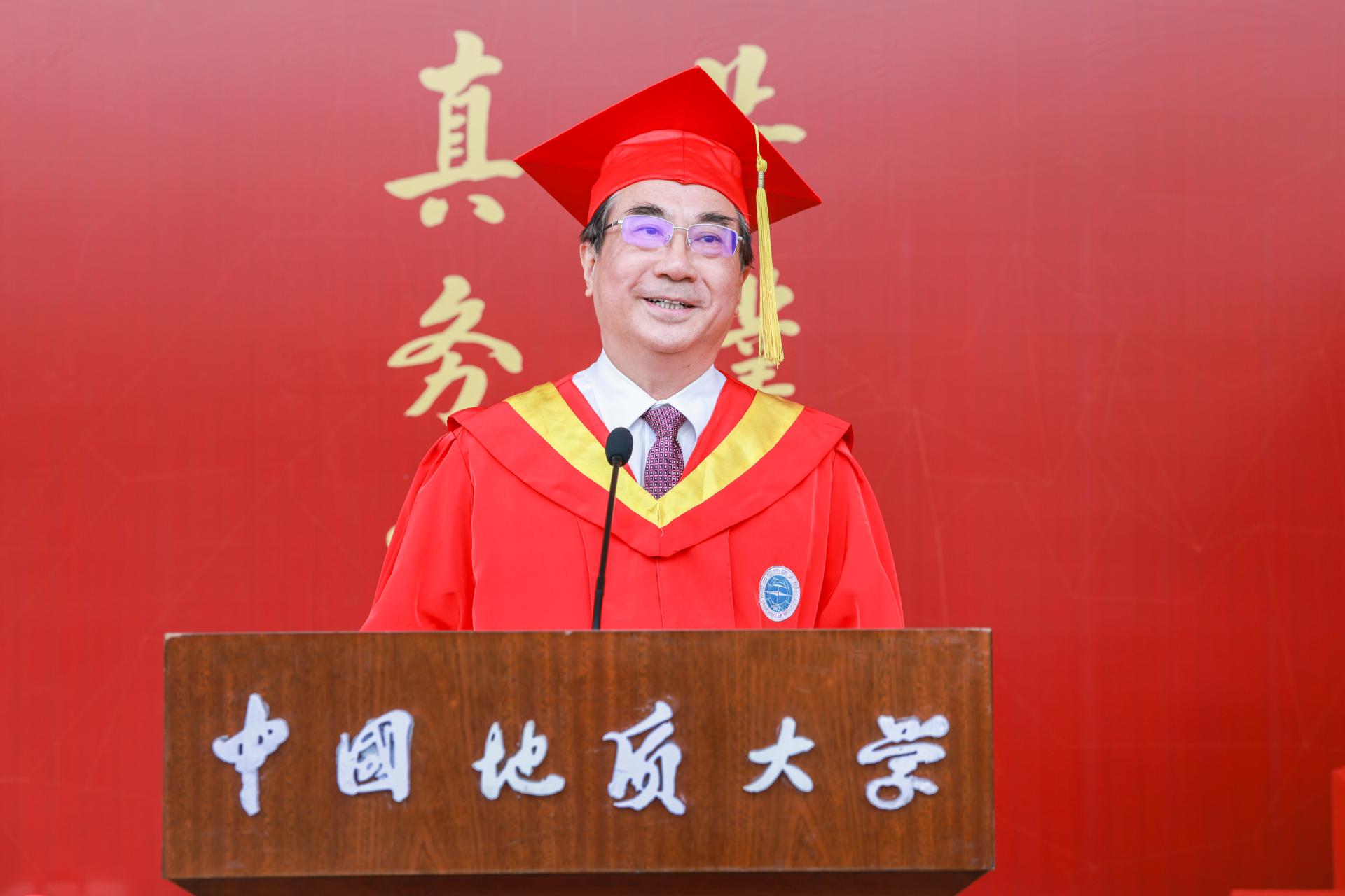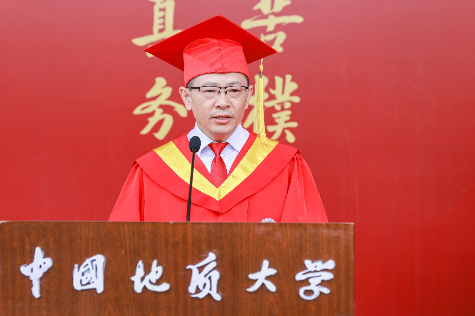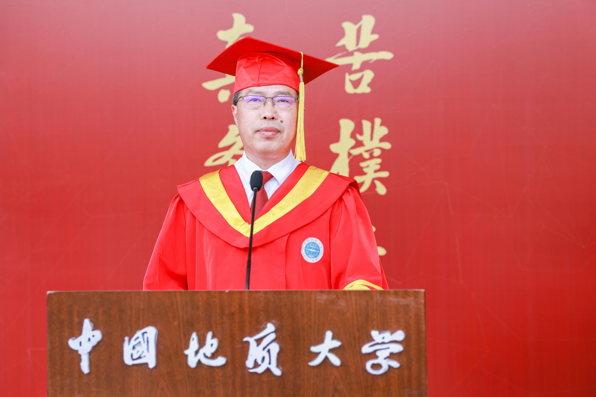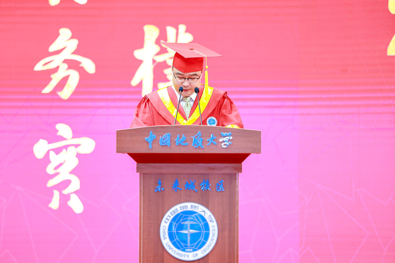 副校长刘杰宣读《2023届先进毕业班、优秀毕业生表彰决定》。地球科学学院010192班、x11194班,资源学院020191班等20个培养单位的33个毕业班集体获“先进毕业班”称号。王语奇等20个培养单位的510名本科生,辛友志等21个培养单位的359名研究生,以及国际教育学院孔妮、杜和曼等10名留学生获“优秀毕业生”称号。