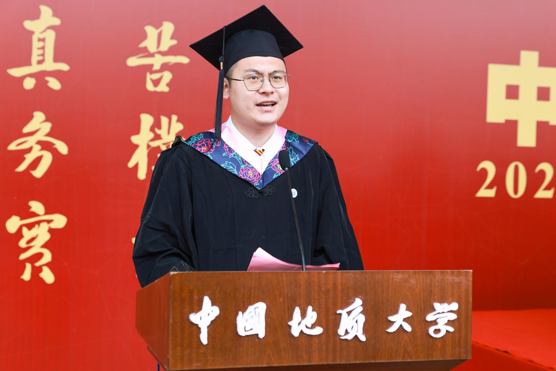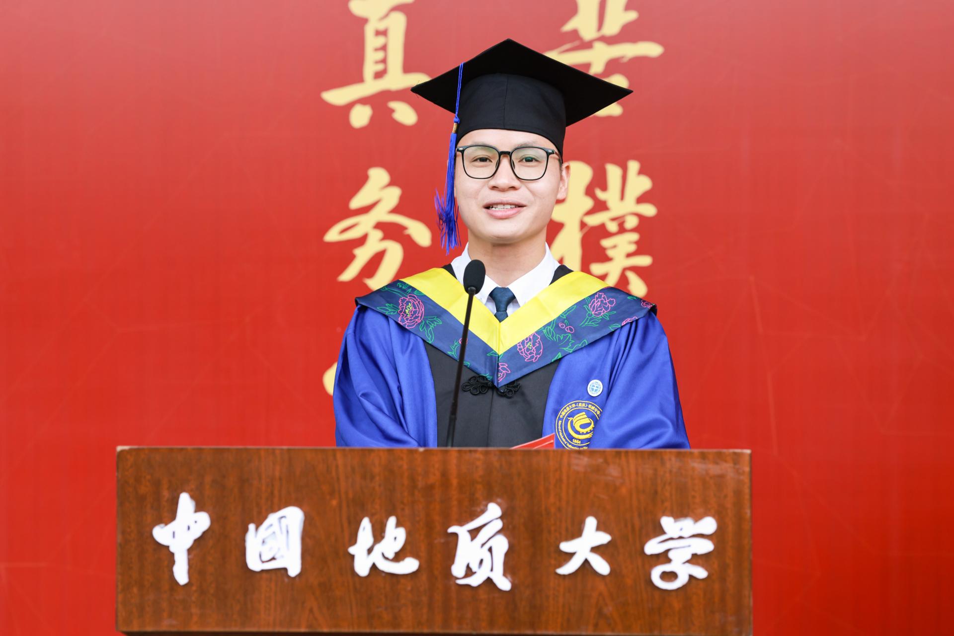 毕业研究生代表、机械与电子信息学院机械专业硕士研究生王优发言。他说,在opta足球求学七年,让他从一名来自偏远乡村的“背篼娃”蜕变成勇攀高峰的科研工作者,坚定了建功科技兴国新时代的奋斗方向。他将带着opta足球的深厚记忆和文化烙印,与母校同行,为早日实现“地球科学领域世界一流大学”的宏伟目标努力奋进。