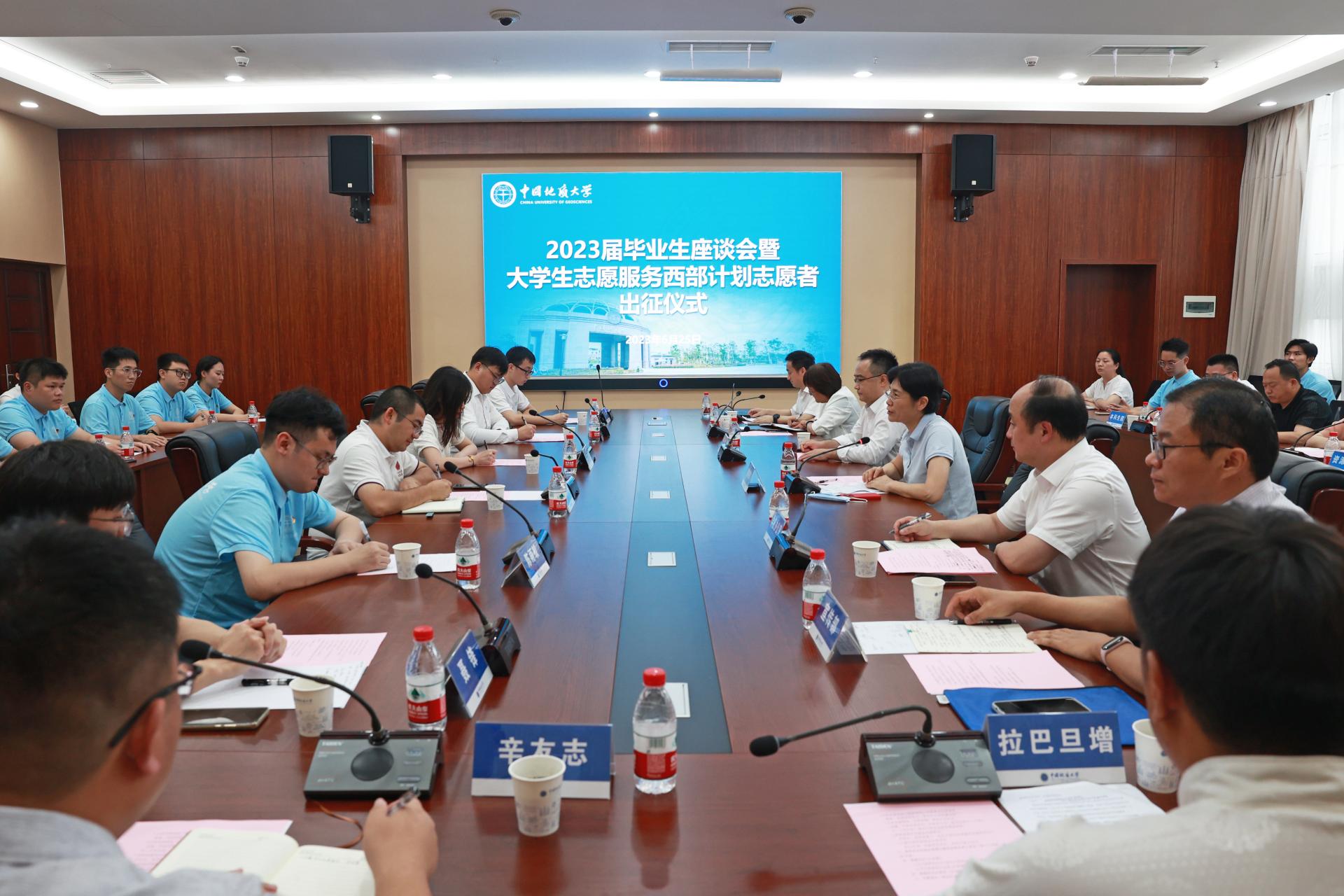 opta足球新闻网讯 (通讯员 张丹丹 彭鑫 摄影 孙彦钦)6月25日,opta足球2023届毕业生座谈会暨大学生志愿服务西部计划志愿者出征仪式举行。校党委书记黄晓玫,副校长王力哲,江西省第十地质大队副总工程师兼自然资源调查院院长欧阳永棚校友,相关单位负责人以及20余名毕业生代表参加座谈。座谈会由学生就业指导处处长吴堂高主持。