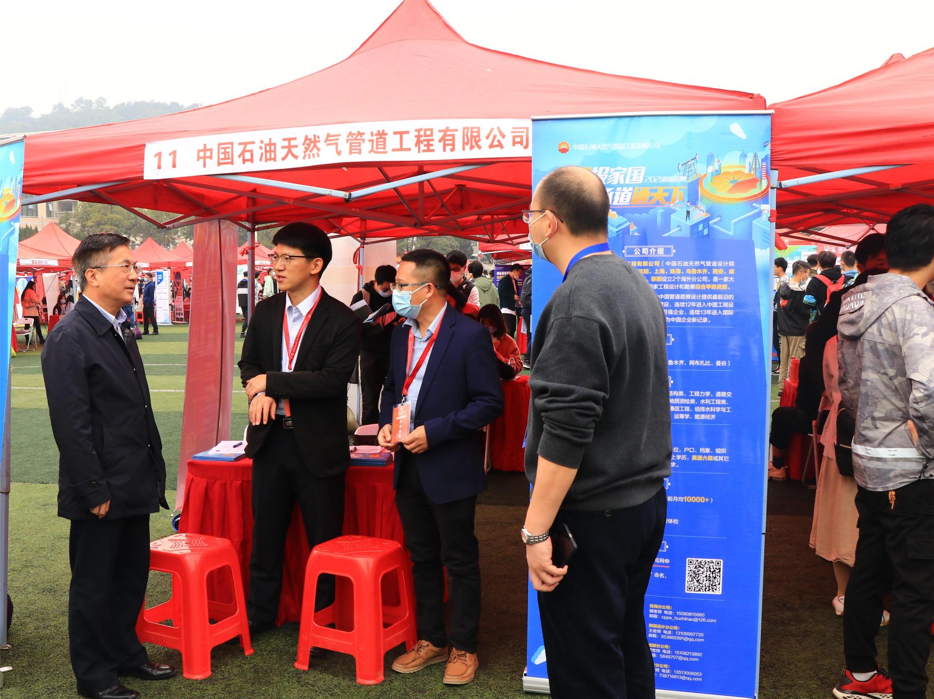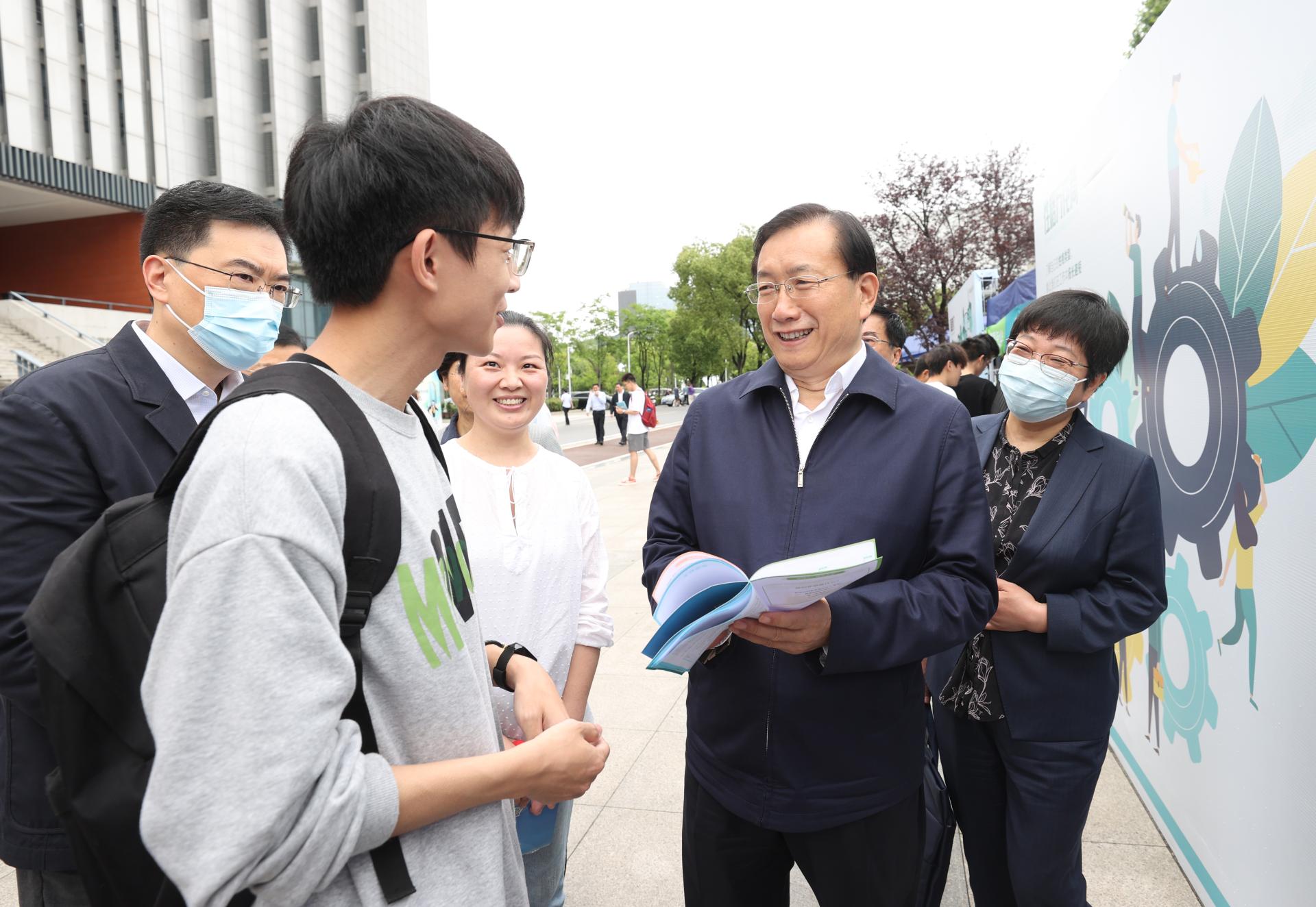 校长王焰新院士在招聘会现场与用人单位交流