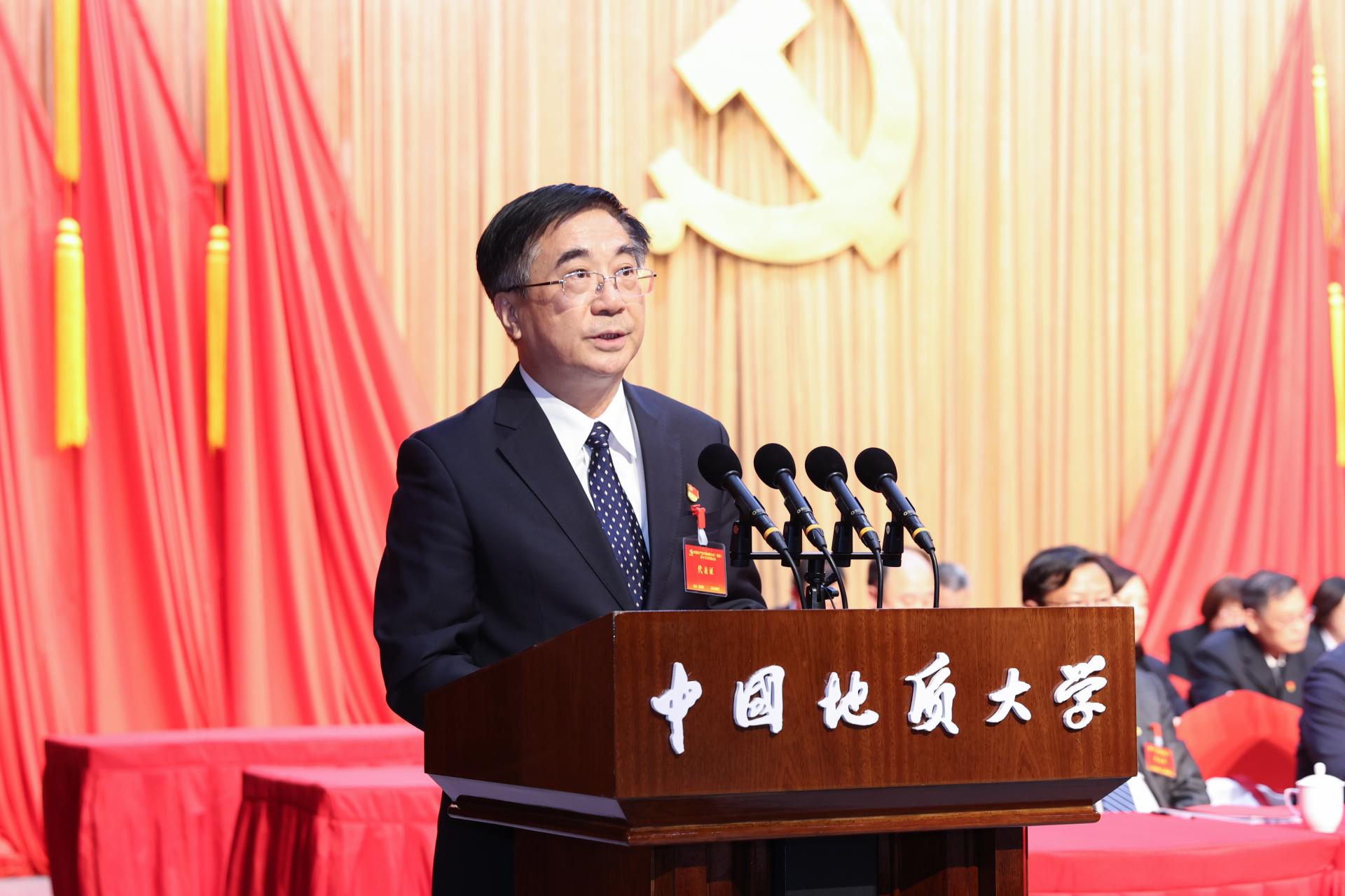 大会号召,学校各级党组织和全体党员师生要以习近平新时代中国特色社会主义思想为指引,在中共教育部党组、中共湖北省委的领导下,在学校新一届党委的带领下,全面贯彻党的二十大精神,深入学习贯彻习近平新时代中国特色社会主义思想,坚持党的全面领导,把党的政治建设摆在首位,深刻领悟“两个确立”的决定性意义,切实增强“四个意识”,坚定“四个自信”,做到“两个维护”,在思想上政治上行动上始终同以习近平同志为核心的党中央保持高度一致,推进全面从严治党向纵深发展,营造风清气正的良好政治生态,砥砺奋进、开拓创新,加快建设地球科学领域国际知名研究型大学,在建设教育强国、服务中国式现代化建设中担当新使命、展现新作为。