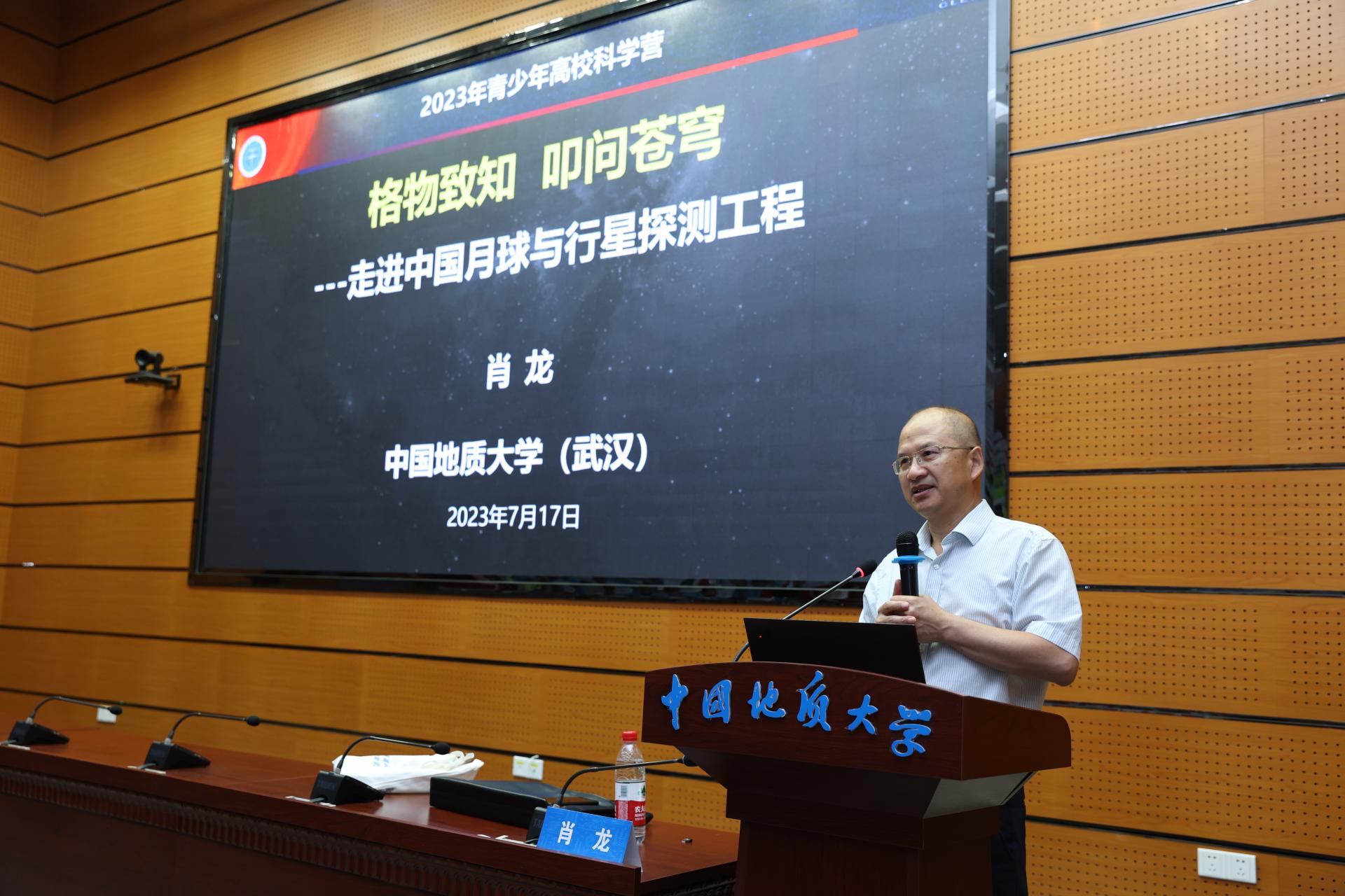 开营仪式后,地球科学学院肖龙教授为营员带来科普讲座——《格物致知 叩问苍穹:走进中国月球和火星探测工程》,他从《流浪地球》《三体》等影视作品为切入点,回顾了人类对星空的向往和探索,接着从太阳系的探测历史、嫦娥探月工程、天问一号火星探测、未来太空探测计划等四方面,为营员们讲解了近些年来我国深空探测的发展现状和取得的瞩目成就,并结合自身参与国家深空探测的经历,激励同学们矢志向学、砥砺前行,为国家发展和民族复兴作出贡献。