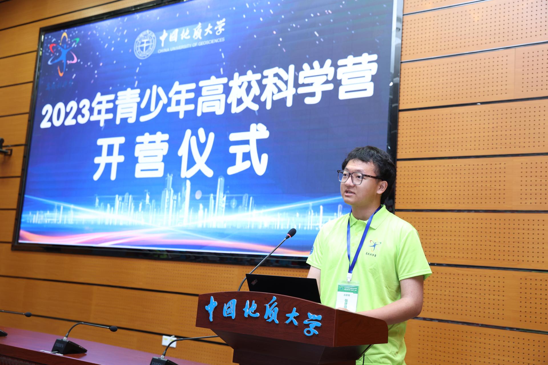 王焰新在开营仪式上致辞。他表示,高校科学营是培养广大青少年科学兴趣和创新精神的重要载体,此次科学营充分利用学校科教资源,聚焦地球科学特色,鼓励青少年立志从事科学研究,为我国培养科技创新后备人才。他希望广大营员把科学营活动作为重要的学习契机,收获科学知识、树立科学精神、放飞青春理想、追逐强国之梦。